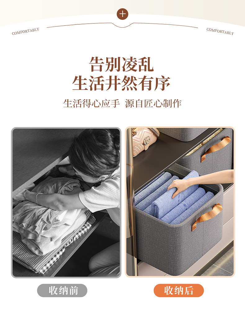 의류 보관 상자 옷장 보관 계층화 된 직물 보관 바구니 가정용 서랍 유형 의류 및 바지 마무리