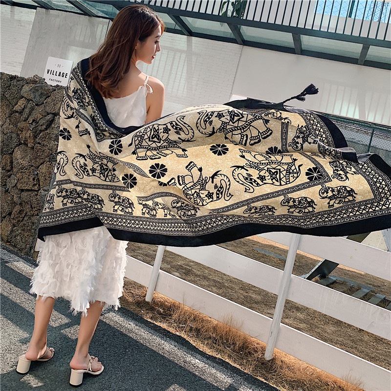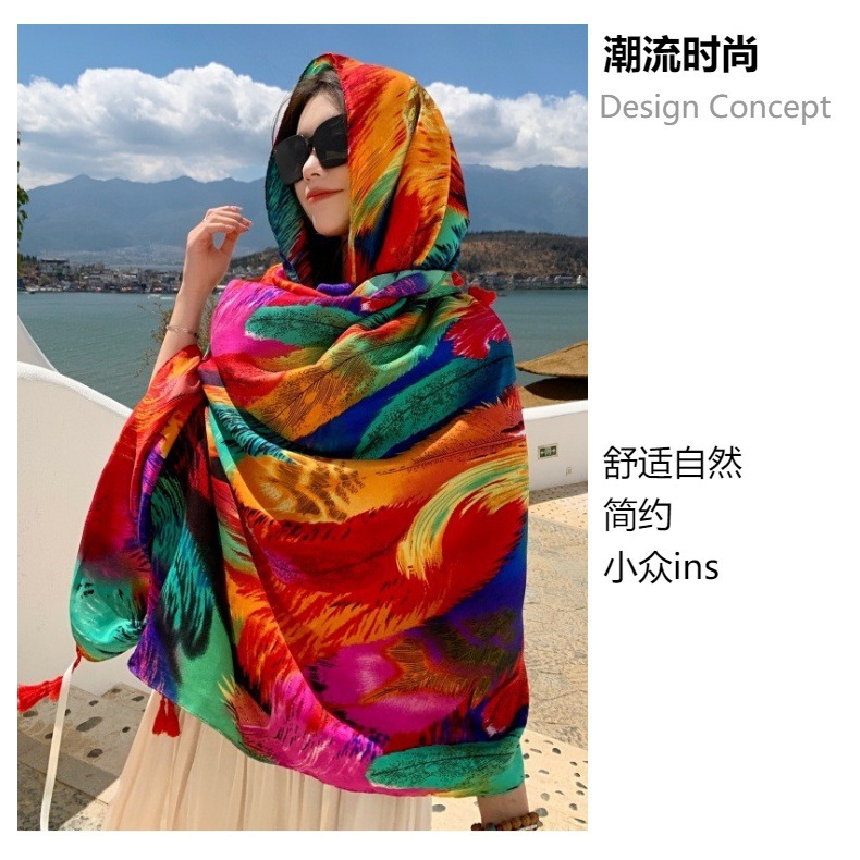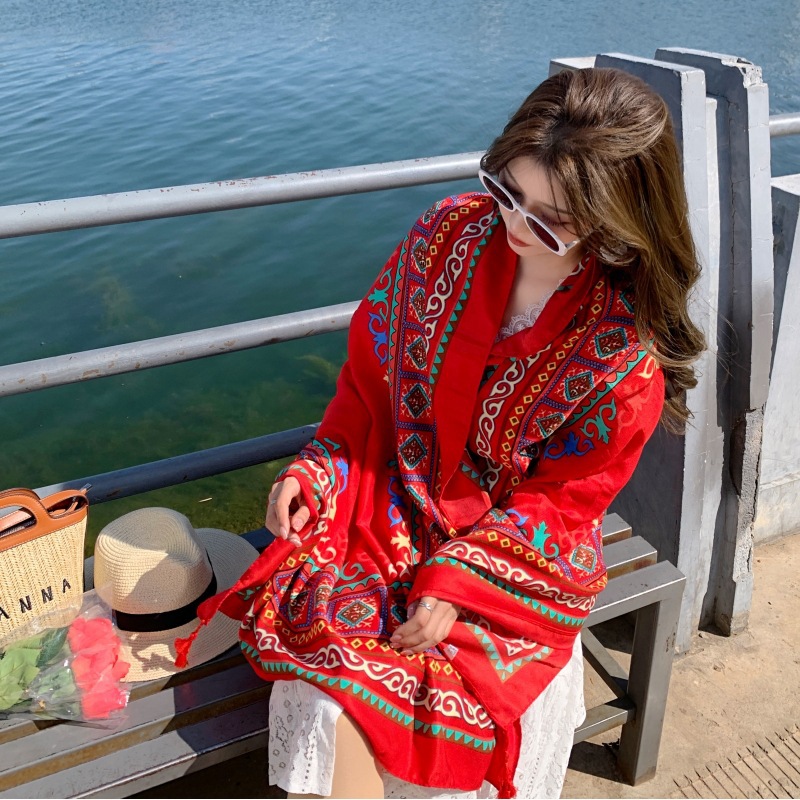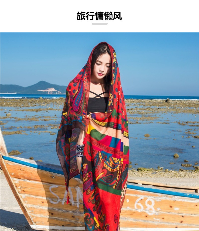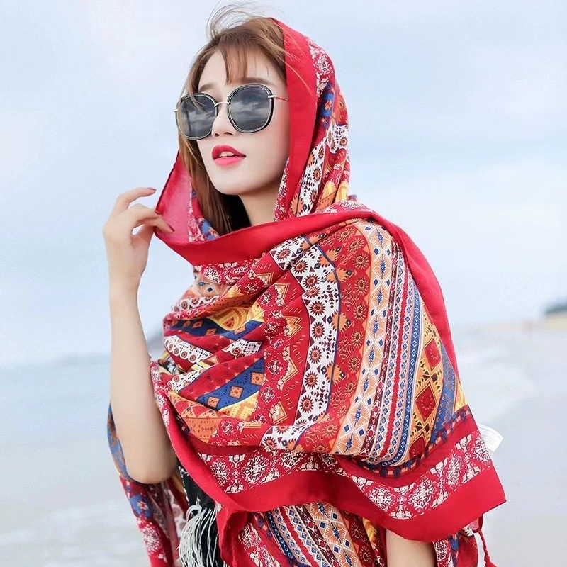 민족 스타일 스카프 해변 여행 해변 타월 인쇄 실크 스카프 선 스크린 목도리 코튼 린넨 거즈 타월 공장 도매 직접 판매스토어 가기