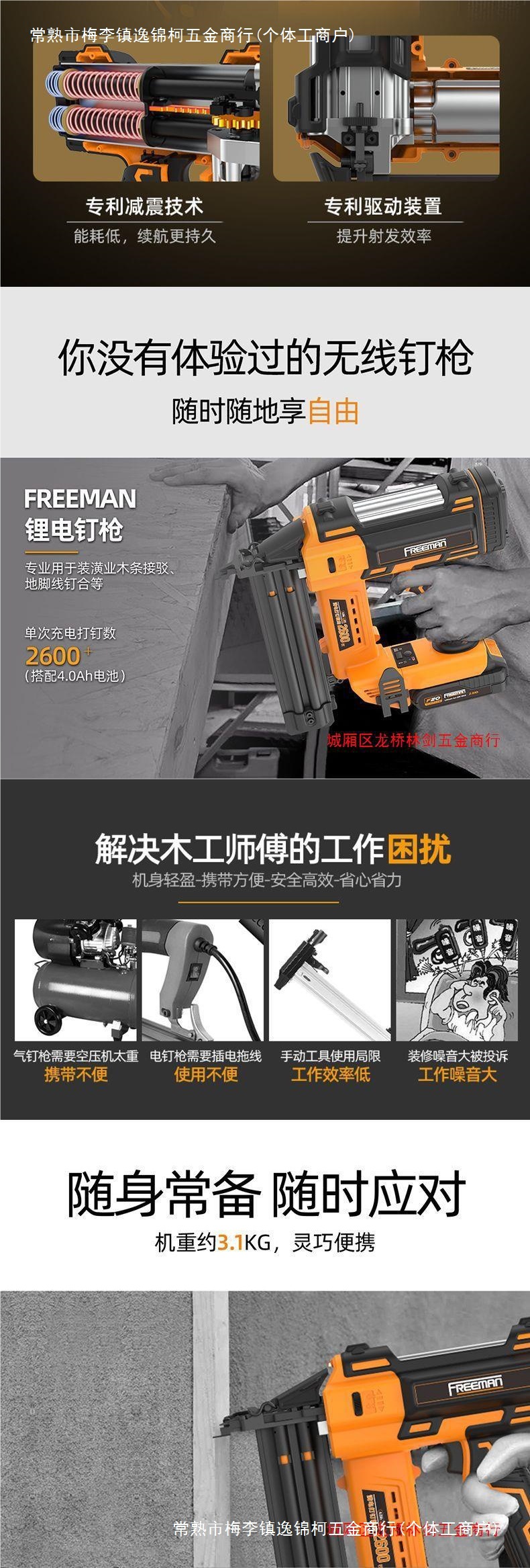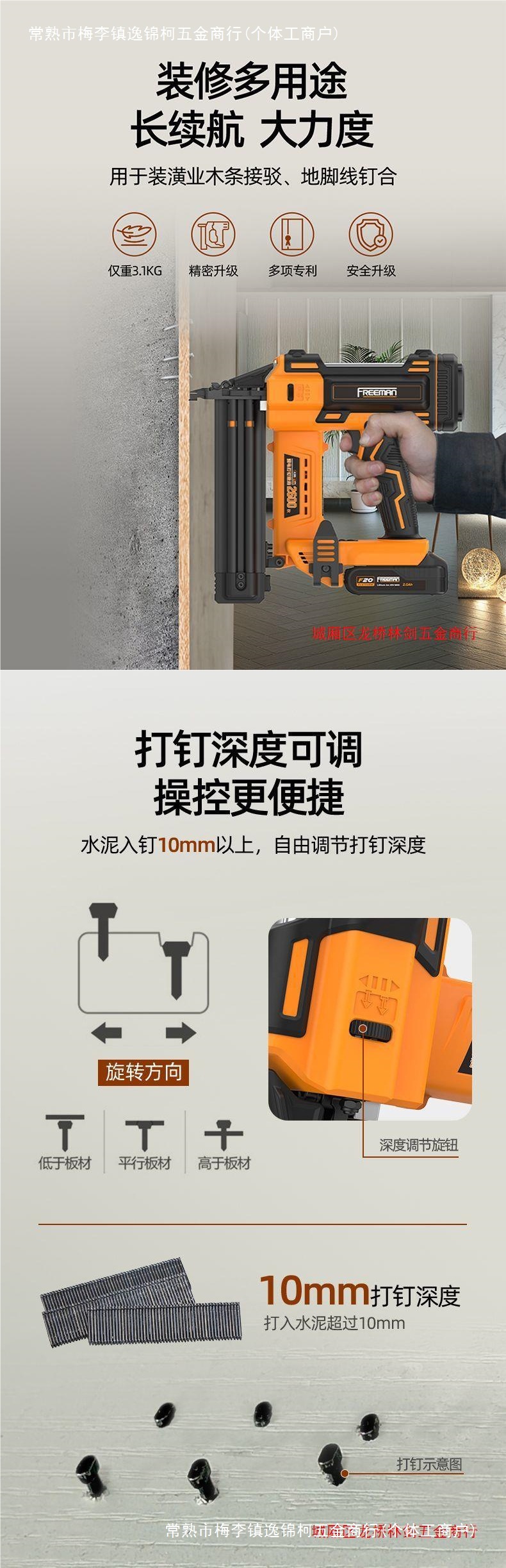 Fulimen 리튬 배터리 FST50 작은 검은 색 네일 건 와이어 슬롯 벽돌 벽 네일 건 목공 천장 스커트 네일 건스토어 가기