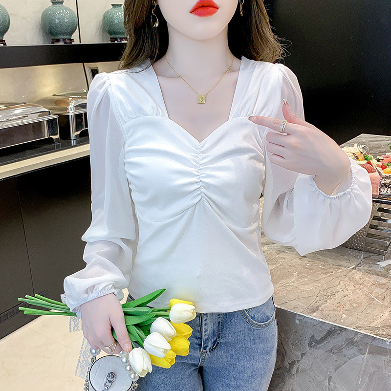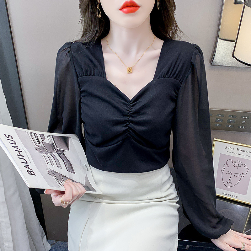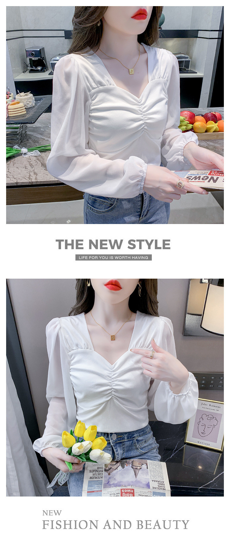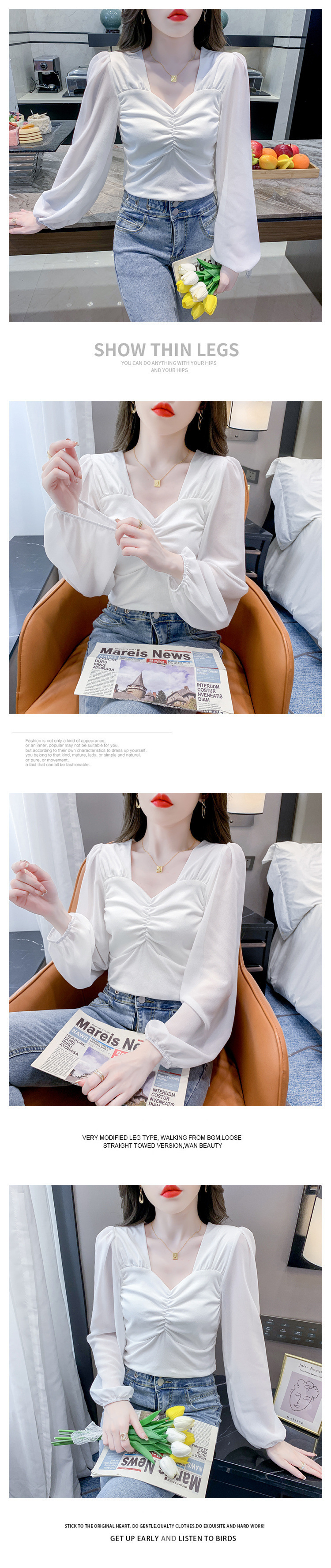 프랑스 달콤한 쉬폰 셔츠 여성용 외부 디자인 틈새 톱 2025 봄과 여름 새로운 세련된 긴 소매 셔츠스토어 가기