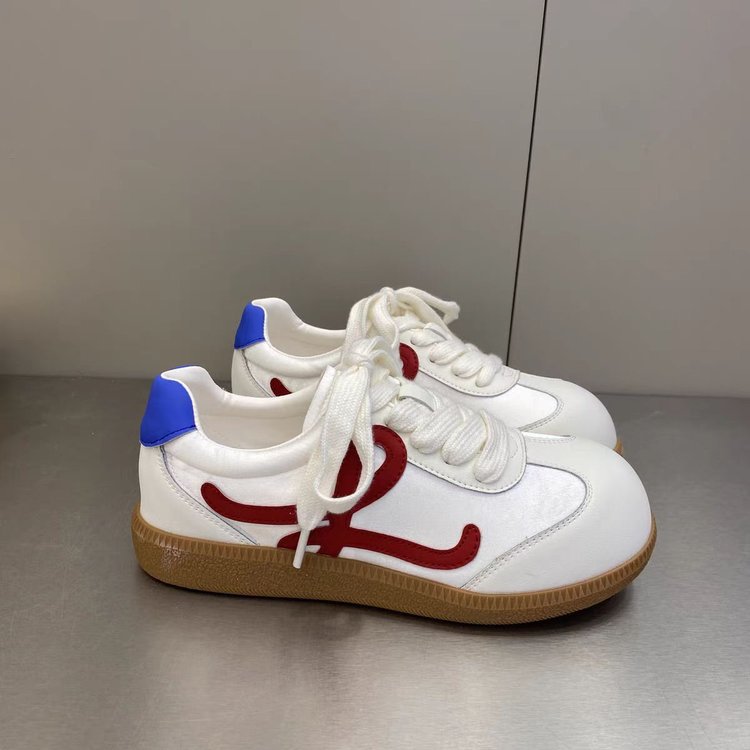 빈티지 컬러 매칭 플랫 화이트 신발 여성의 2025 봄과 가을 새로운 패션 독일 훈련 신발 캐주얼 러닝 스포츠 포레스트 검프 신발스토어 가기