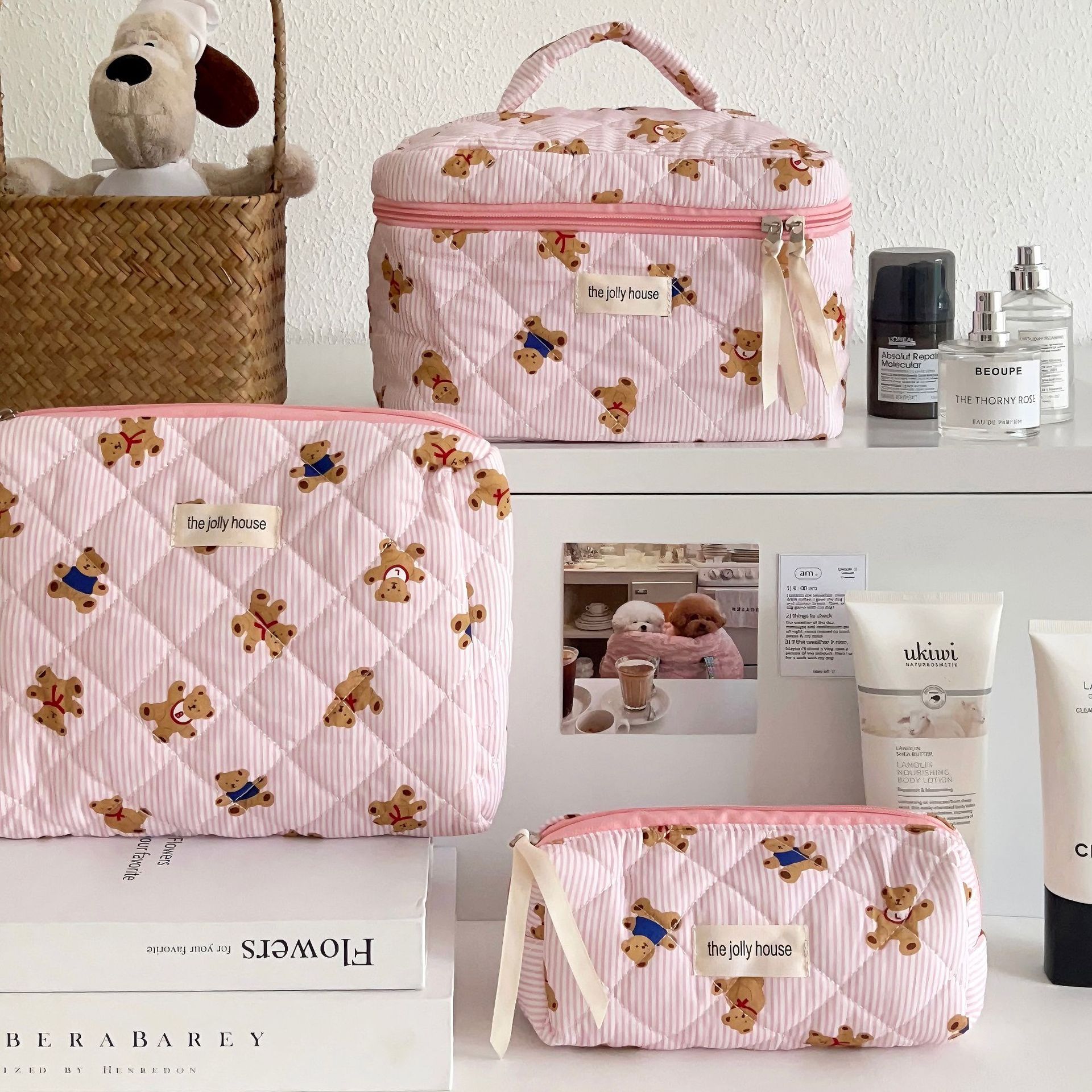 새로운 Ins 스타일 화장품 가방 만화 곰 대용량 휴대용 여행 화장품 보관 가방 세척 가방스토어 가기