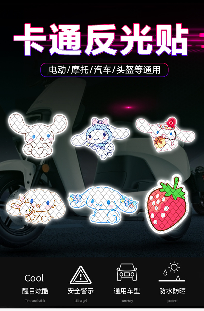 전기 자동차 스티커 스크래치 커버 오토바이 반사 스티커 방수 만화 유귀 개 귀여운 헬멧 장식 스티커