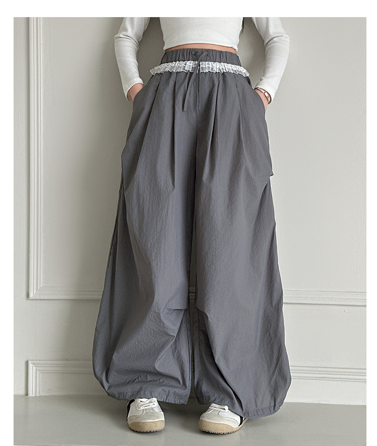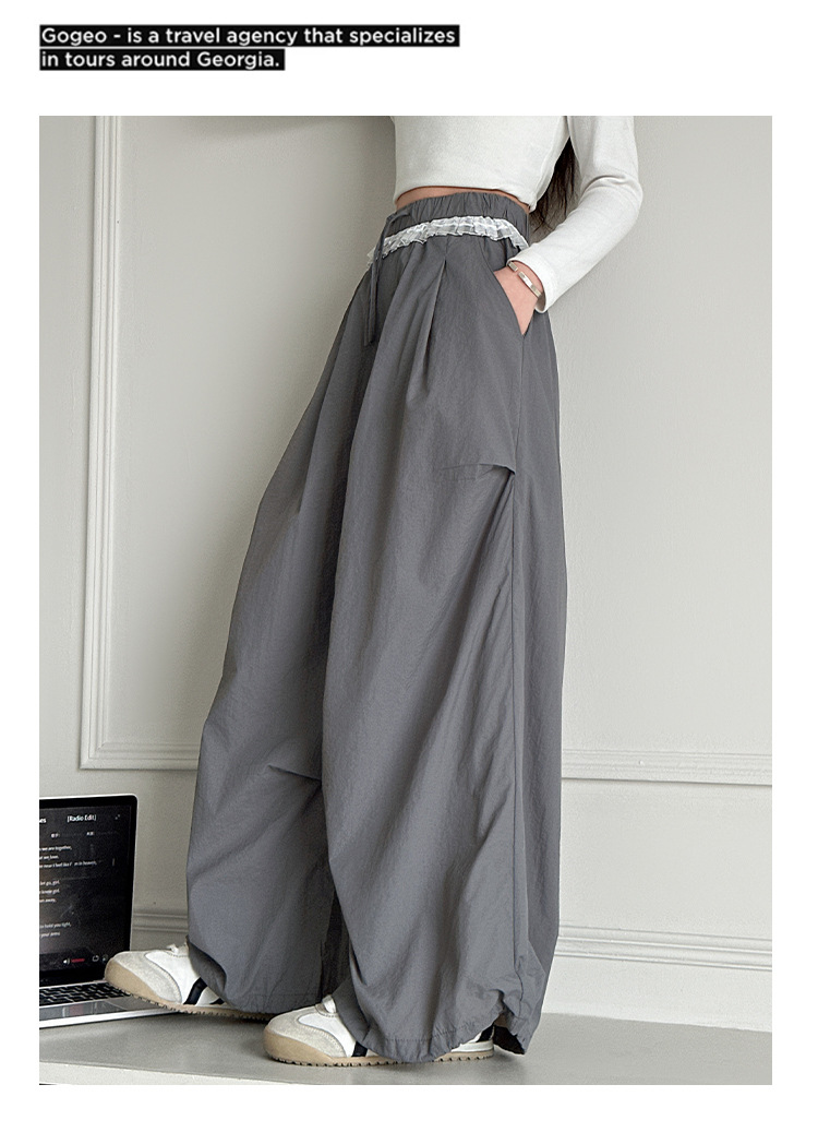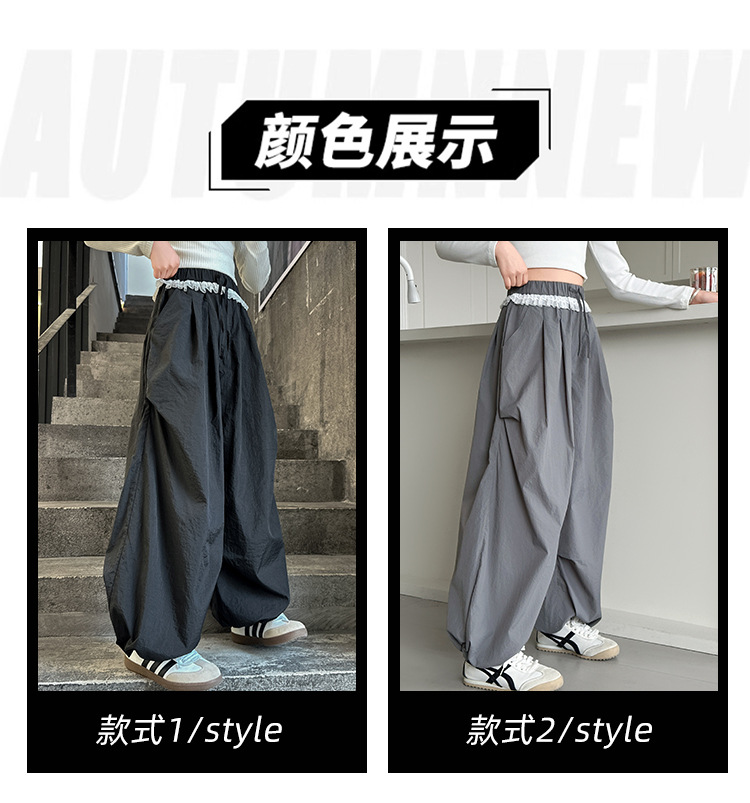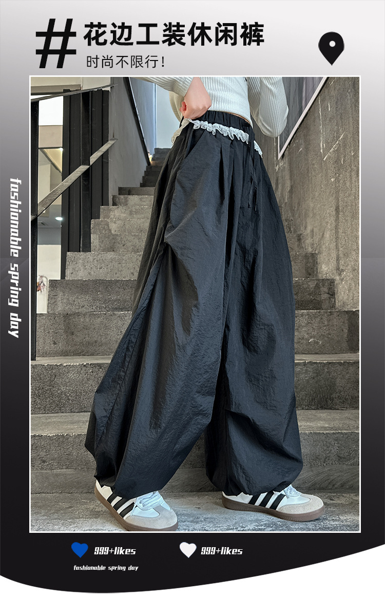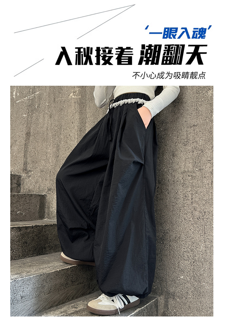 2025 소녀 봄 새로운 세트 한국 스타일 서양식 소녀 긴 소매 탑 레이스 와이드 다리 바지스토어 가기