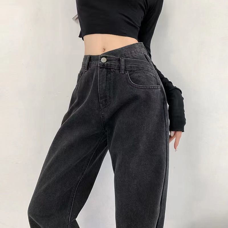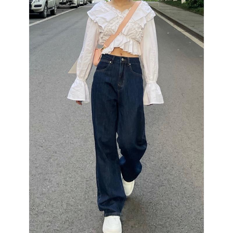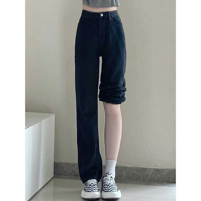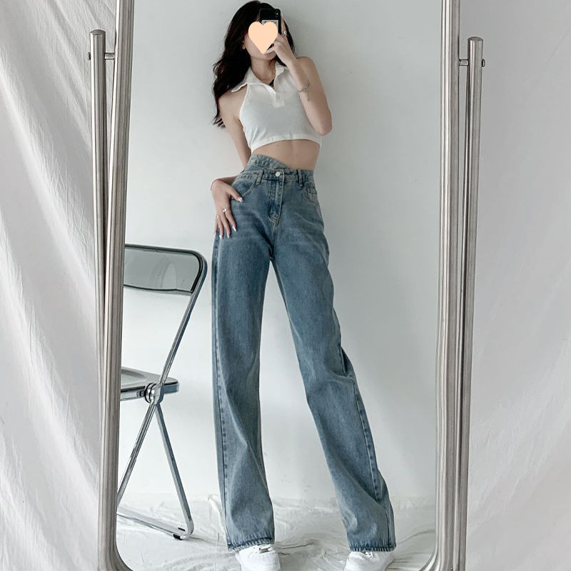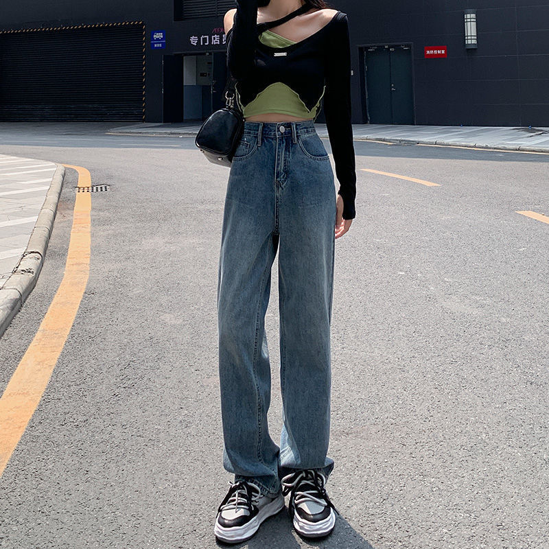 플러스 사이즈 통통한 자매 넓은 다리 청바지 여성 바지 느슨한 이른 가을 높은 허리 스트레이트 슬림 적합 올매치 바지스토어 가기
