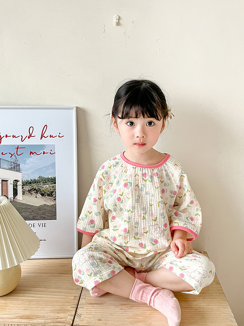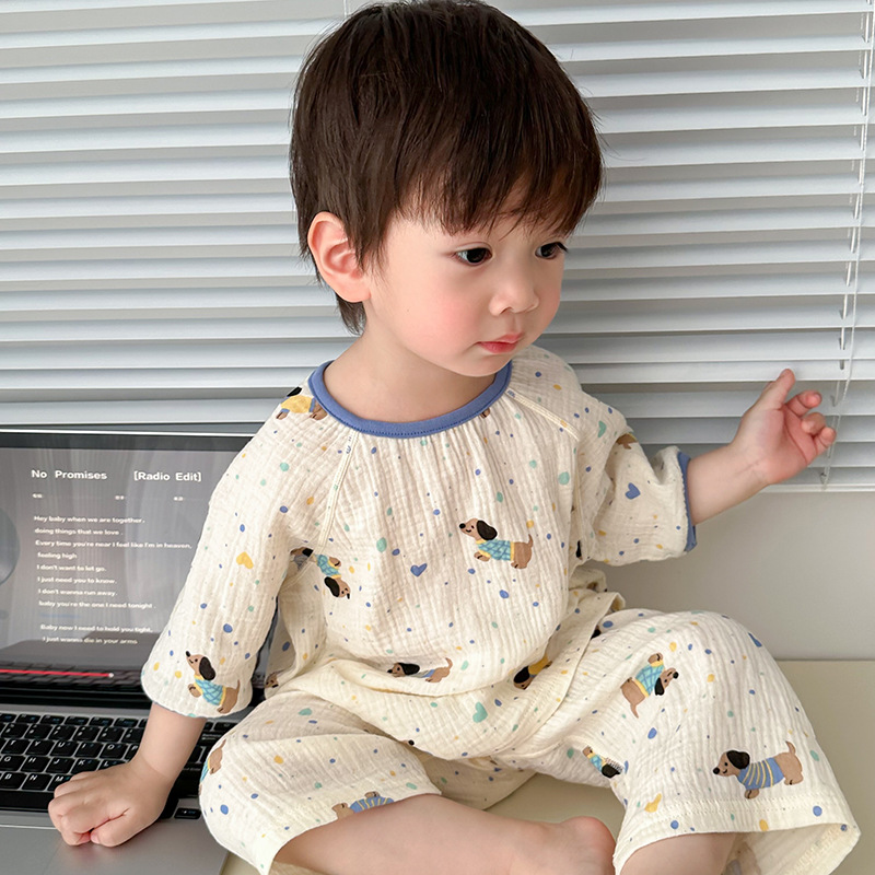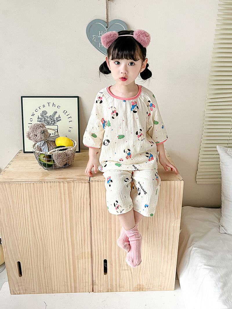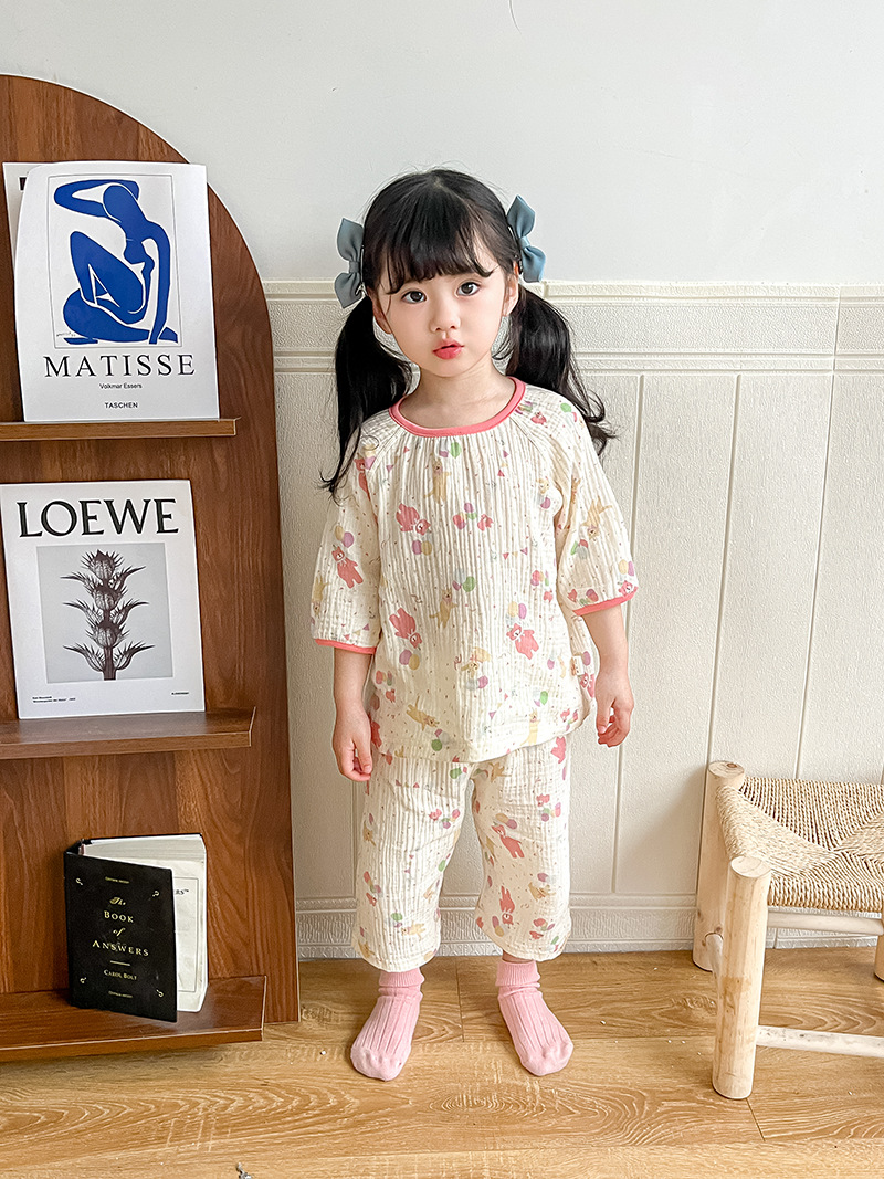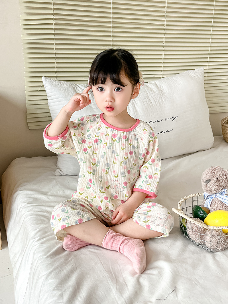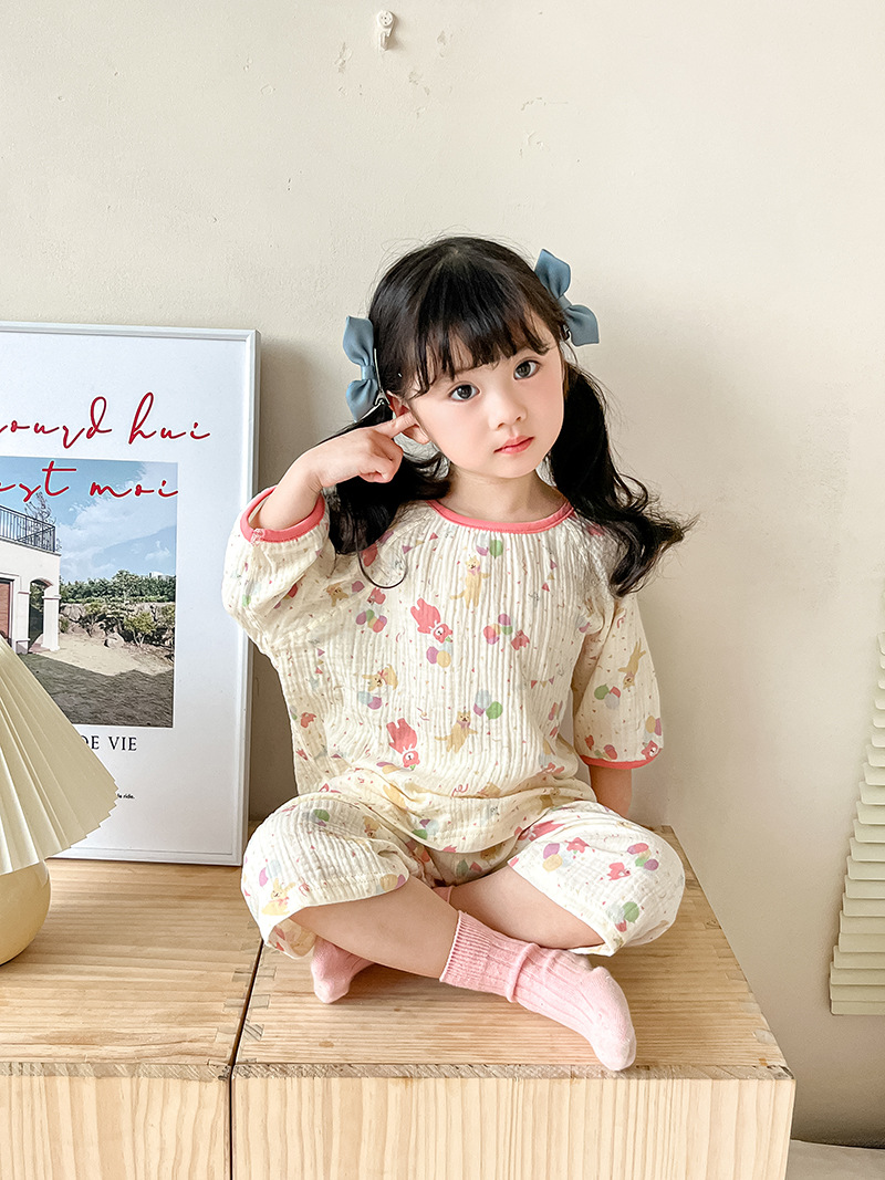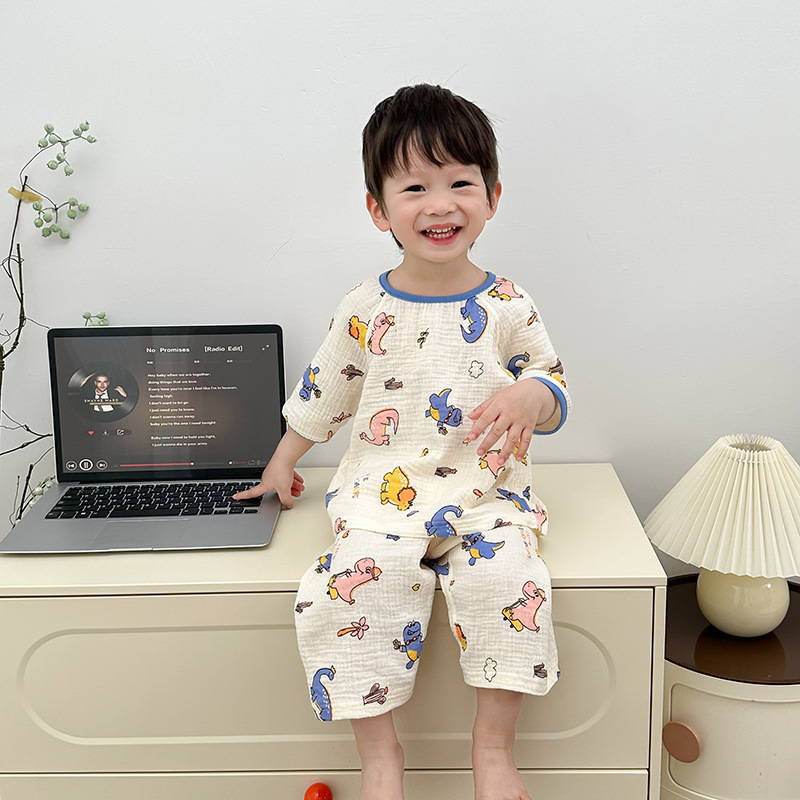 2025新款双层纱布中袖套装,面料柔软亲肤,透气吸汗不闷热,