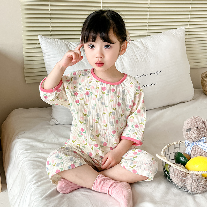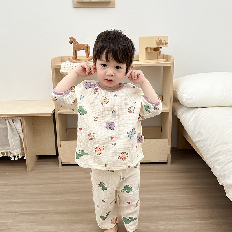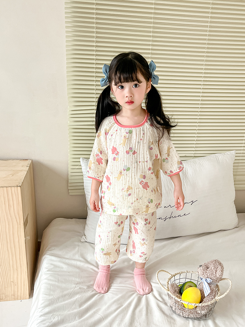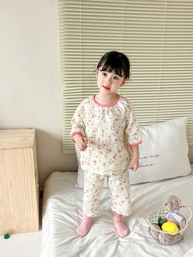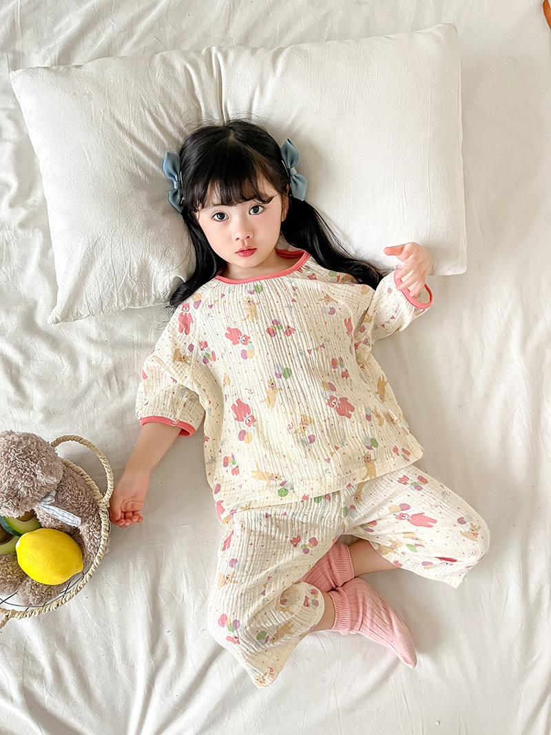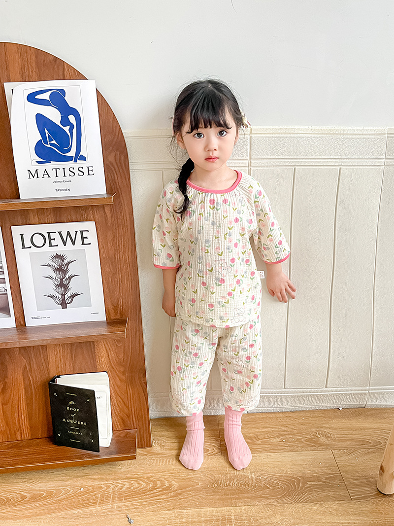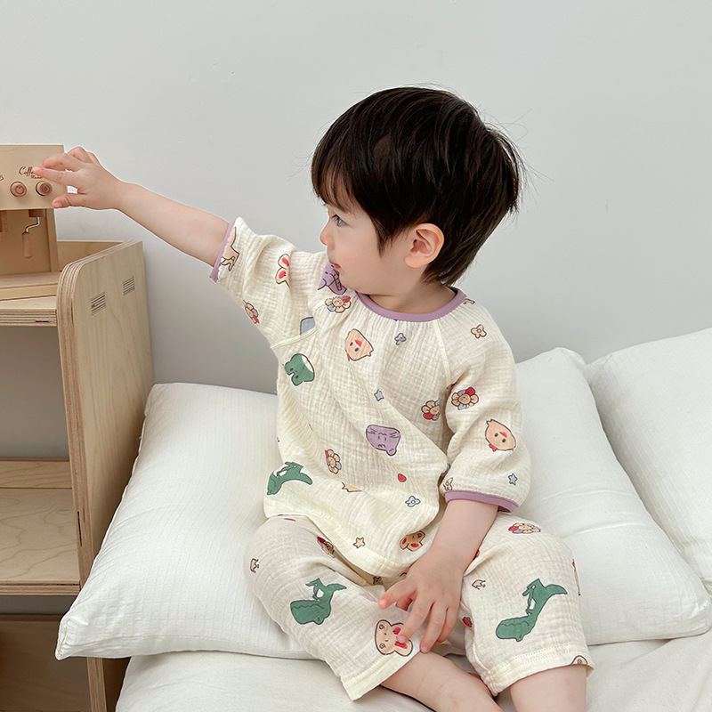 2025新款双层纱布中袖套装,面料柔软亲肤,透气吸汗不闷热,