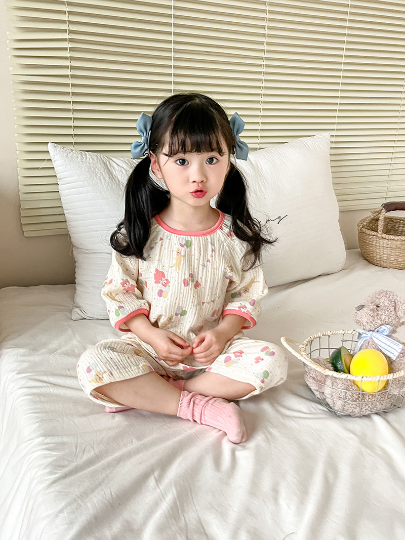 韩版宽松版型,方便宝宝穿脱换洗,经典圆领套头款式,简洁舒适,居家外穿都可以。