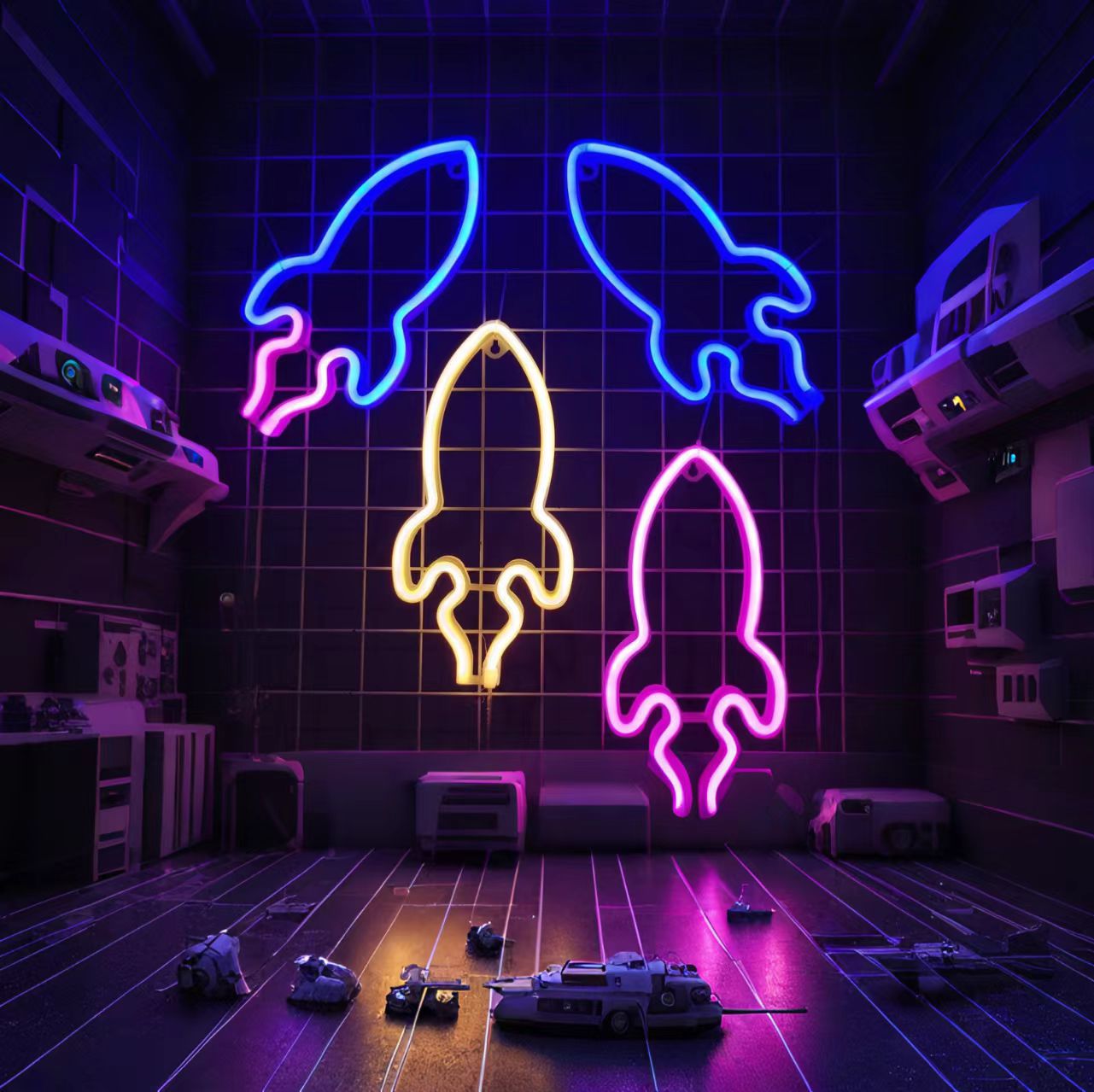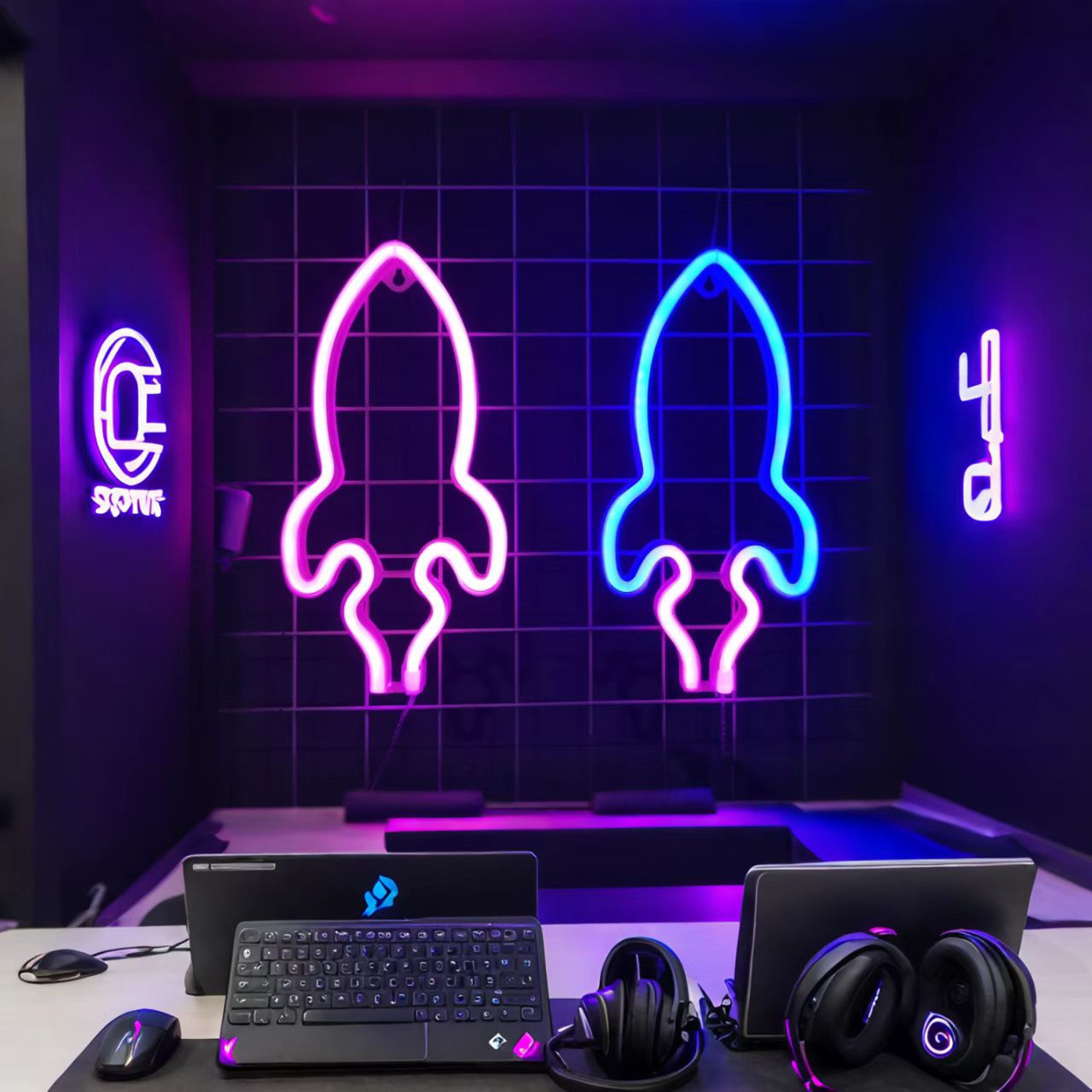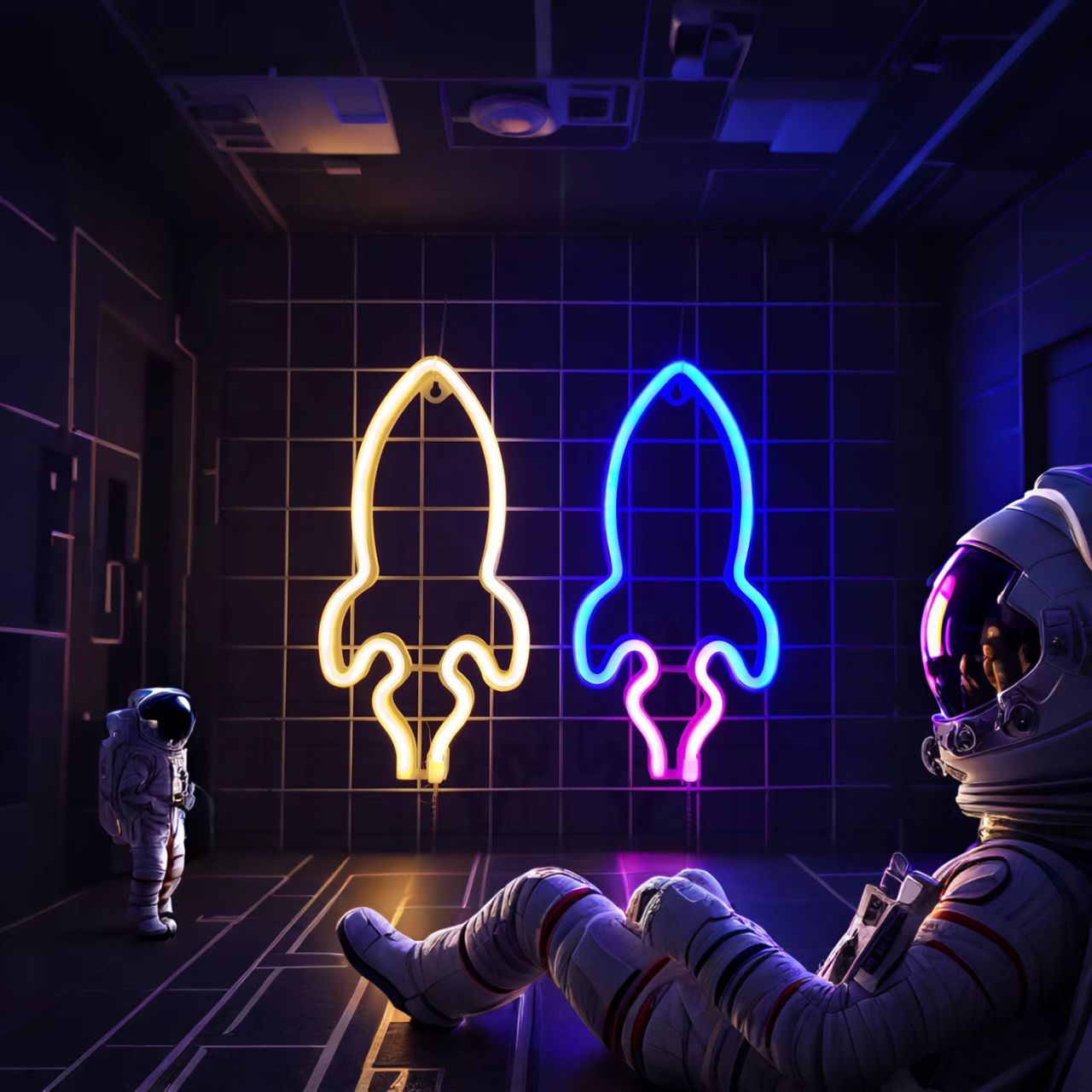 LED 로켓 네온 라이트 월 장식 창조적 인 우주 비행사 공간 테마 분위기 침실 거실 뒷벽 빛