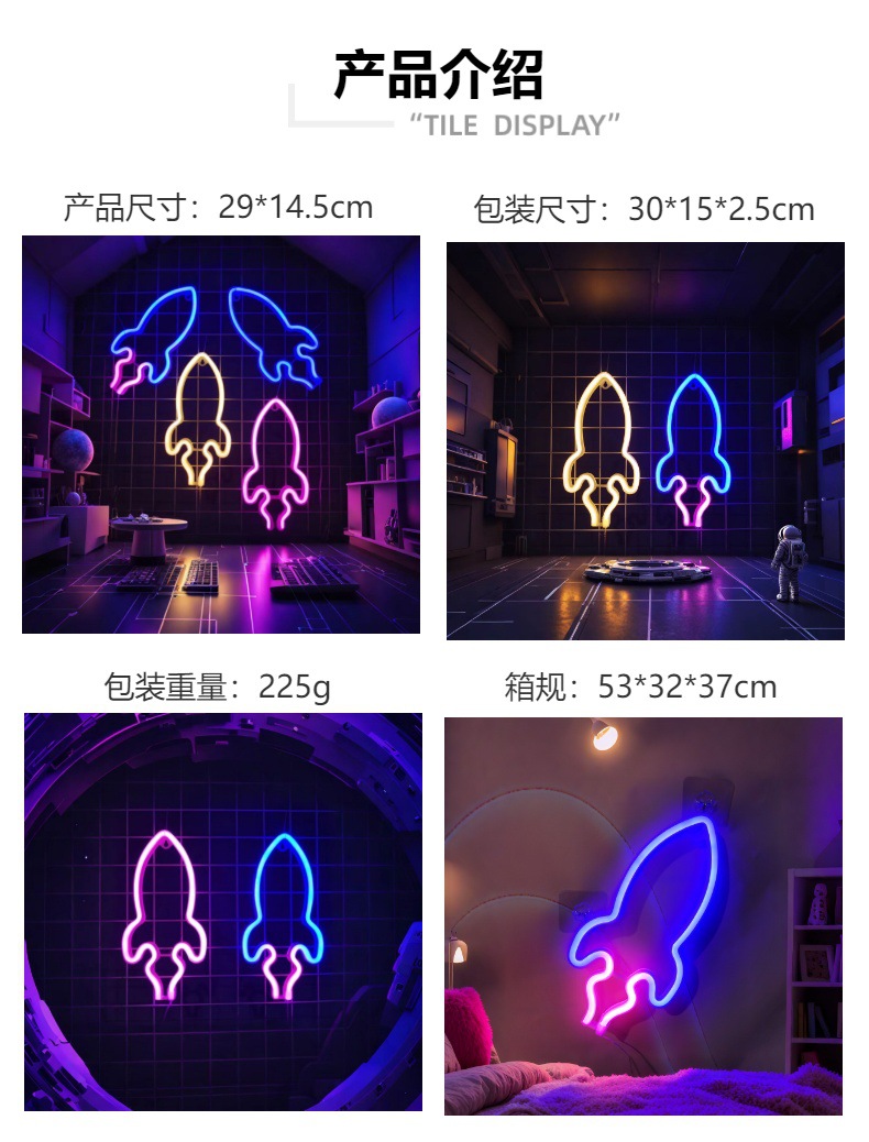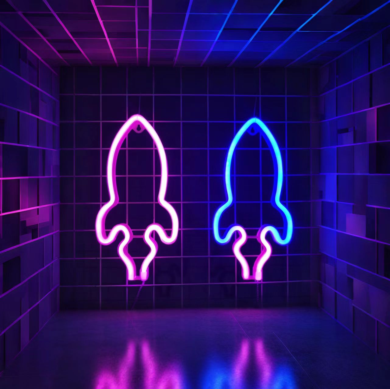 LED 로켓 네온 라이트 월 장식 창조적 인 우주 비행사 공간 테마 분위기 침실 거실 뒷벽 빛스토어 가기