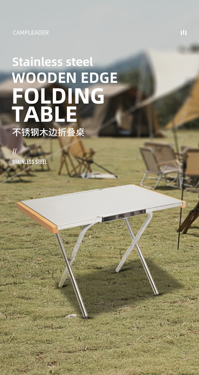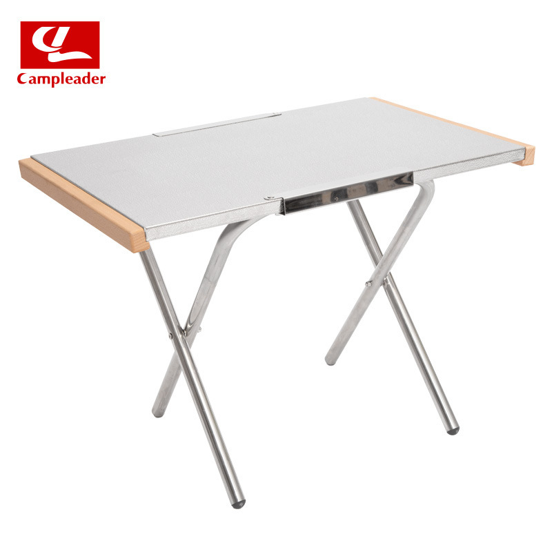 야외 캠핑 접이식 스테인레스 스틸 테이블 프레스 패턴 너도밤 나무 테이블 사이드 피크닉 테이블 캠핑 바베큐 레저 테이블