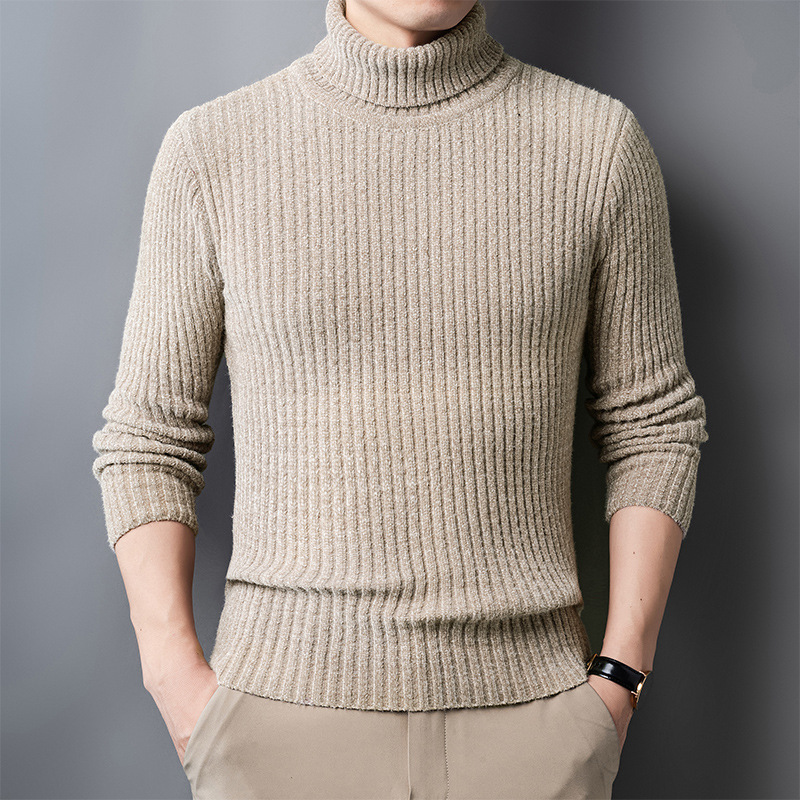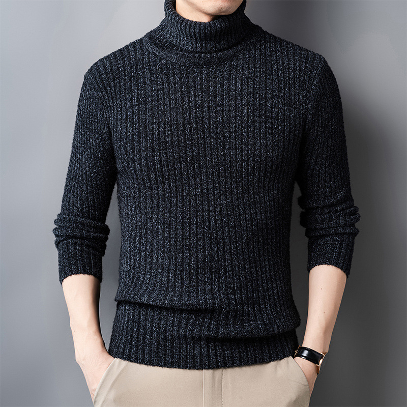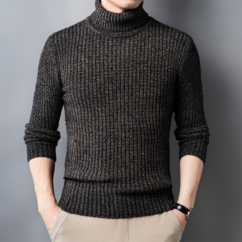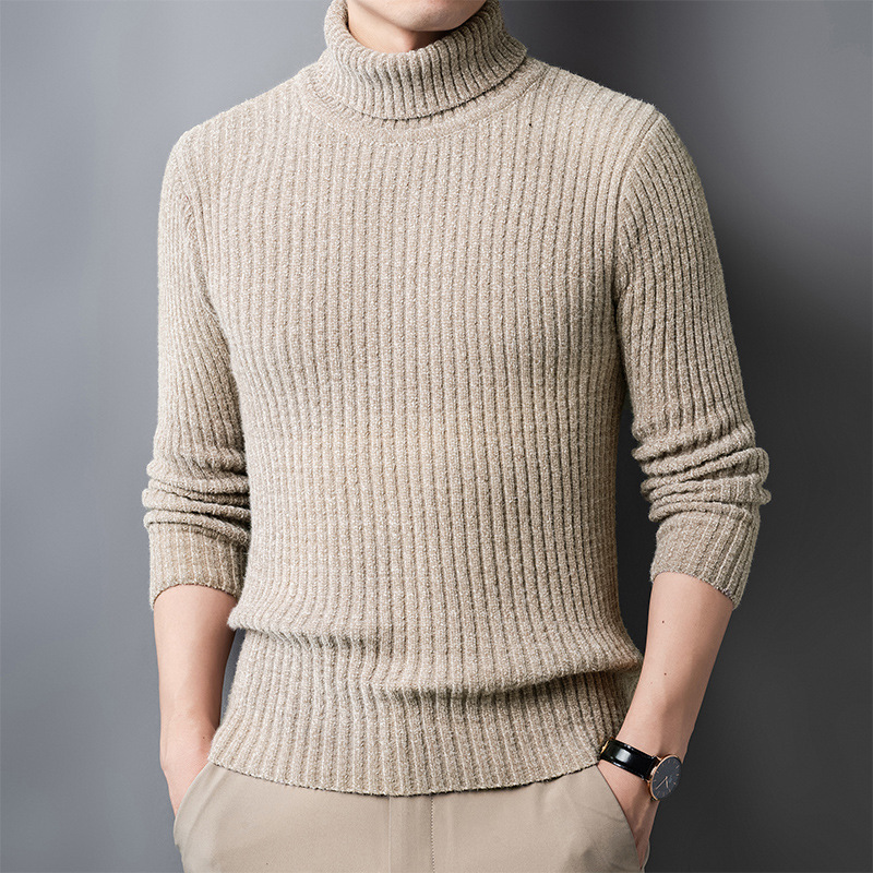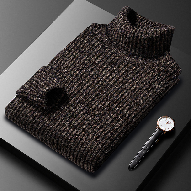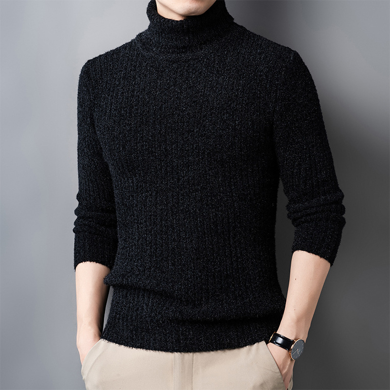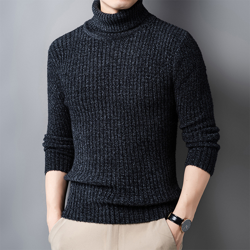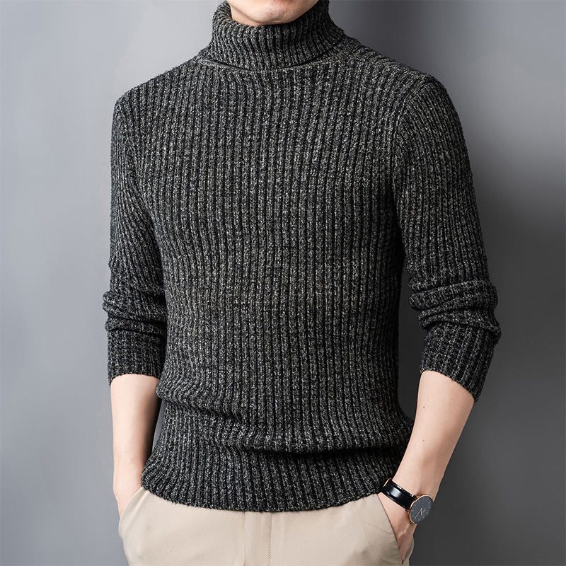 남성 스웨터 가을과 겨울 슈퍼 두꺼운 느슨한 내부 스웨터 감각 단색 높은 칼라 따뜻한 기본 셔츠 도매스토어 가기