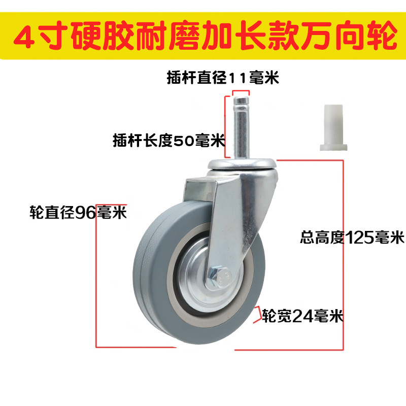 • 4inch 단단한 고무 내마모성 확장 범용 휠
