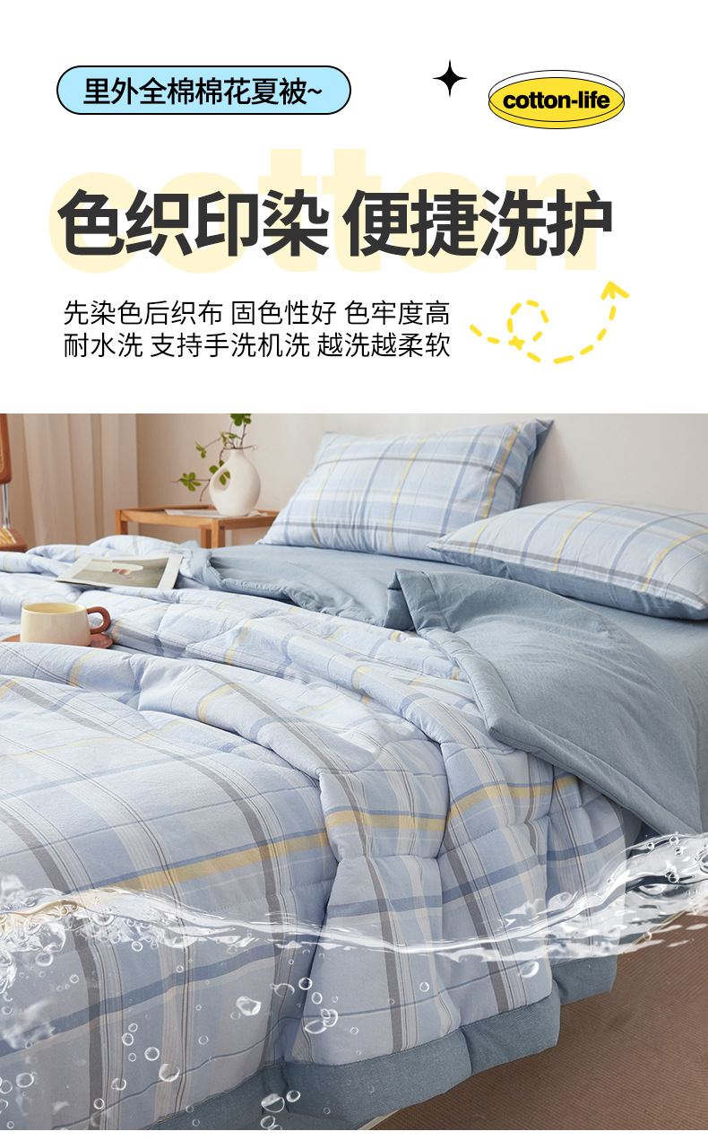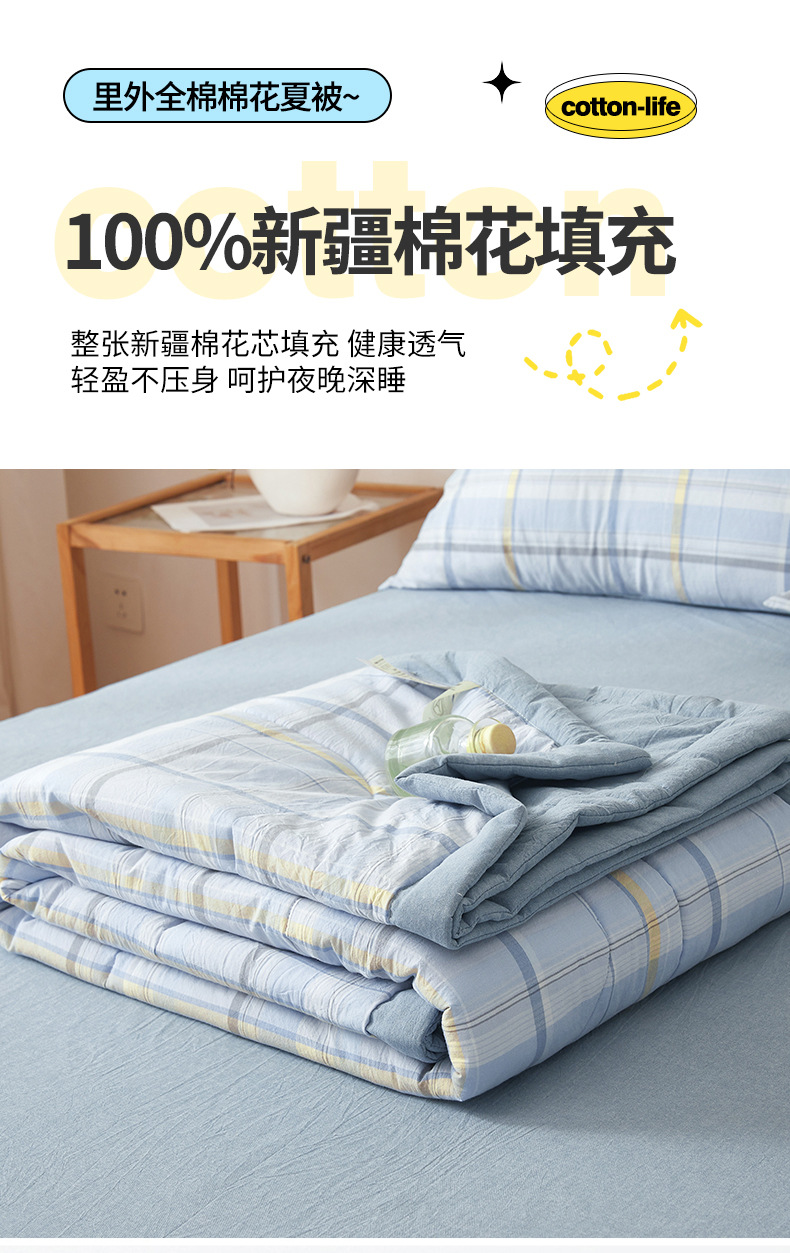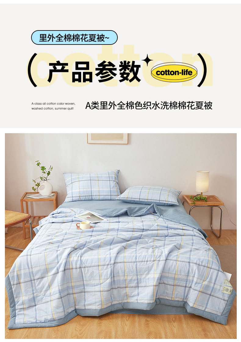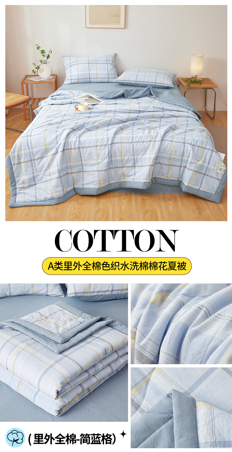 100 모든 면 여름 이불 클래스 모성 및 유아 등급 인쇄되지 않은 신장 면화 여름 이불 원사 염색 면화 에어컨 이불스토어 가기