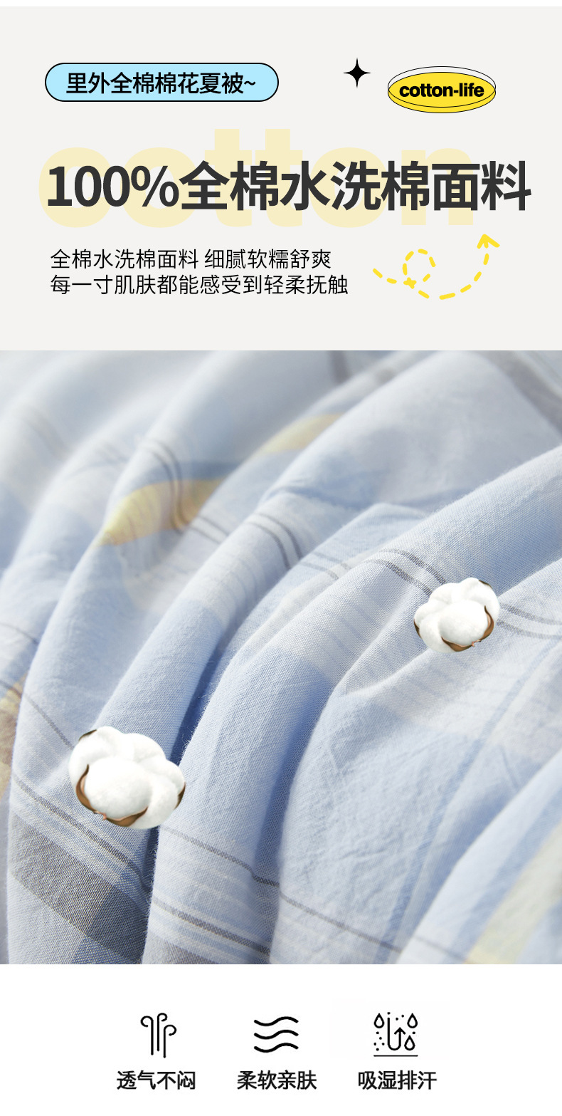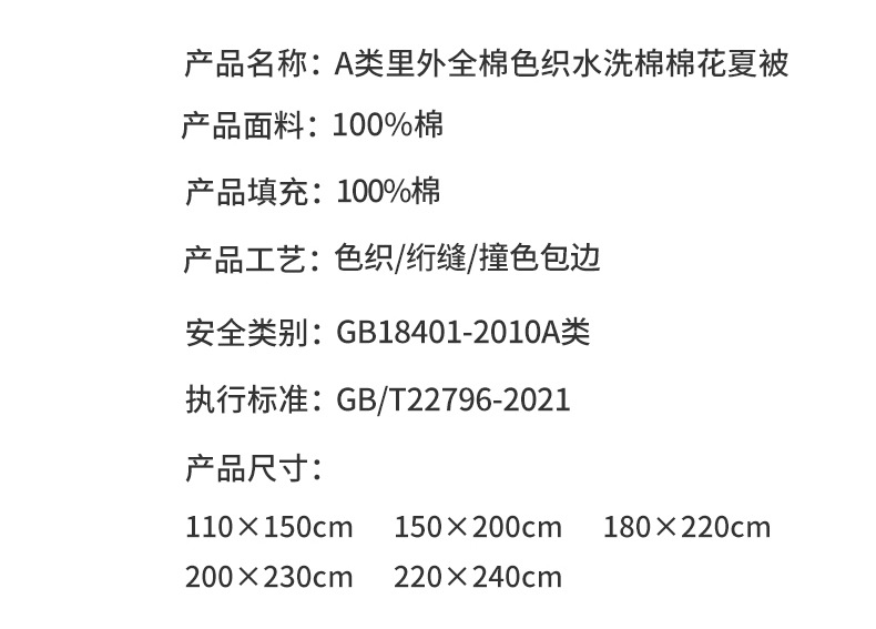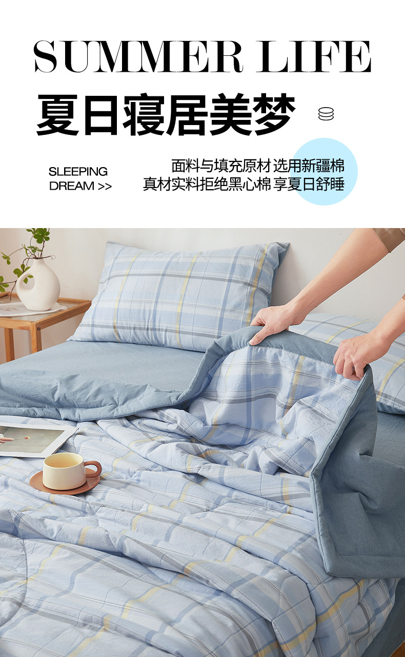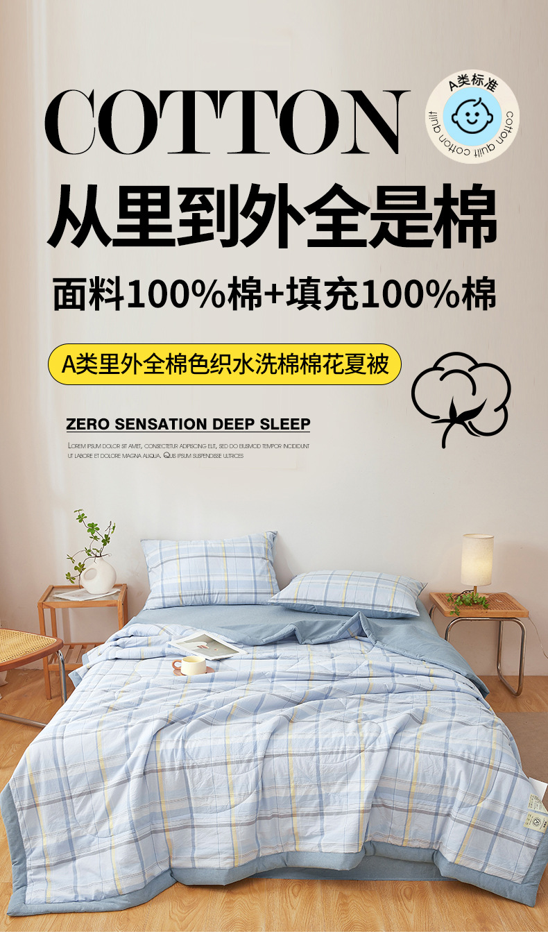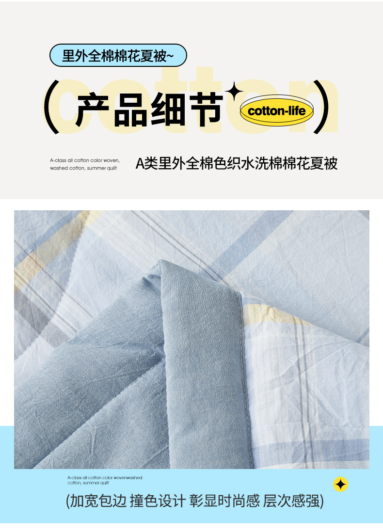 100 모든 면 여름 이불 클래스 모성 및 유아 등급 인쇄되지 않은 신장 면화 여름 이불 원사 염색 면화 에어컨 이불스토어 가기