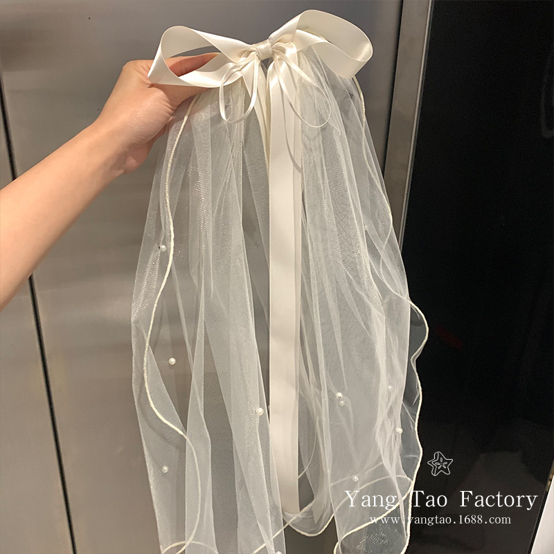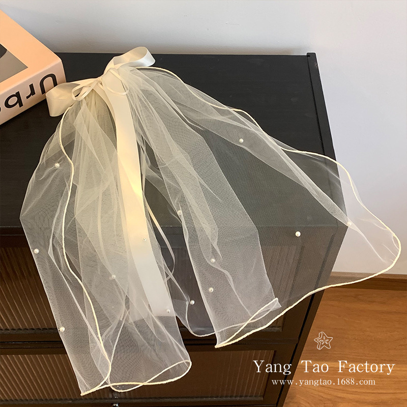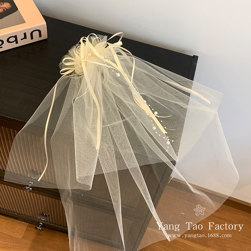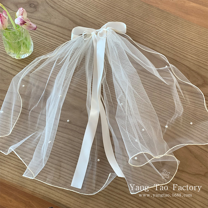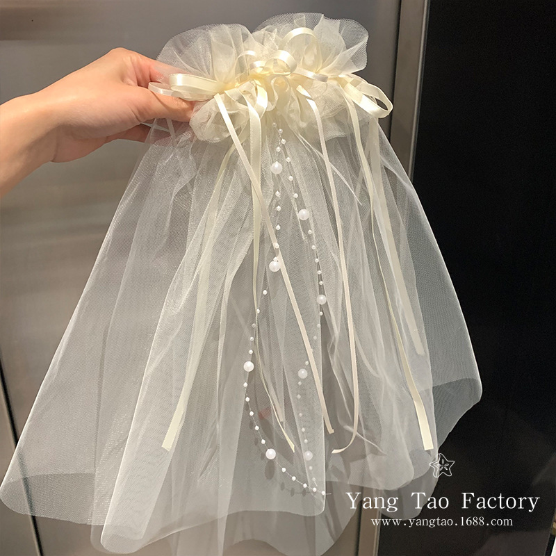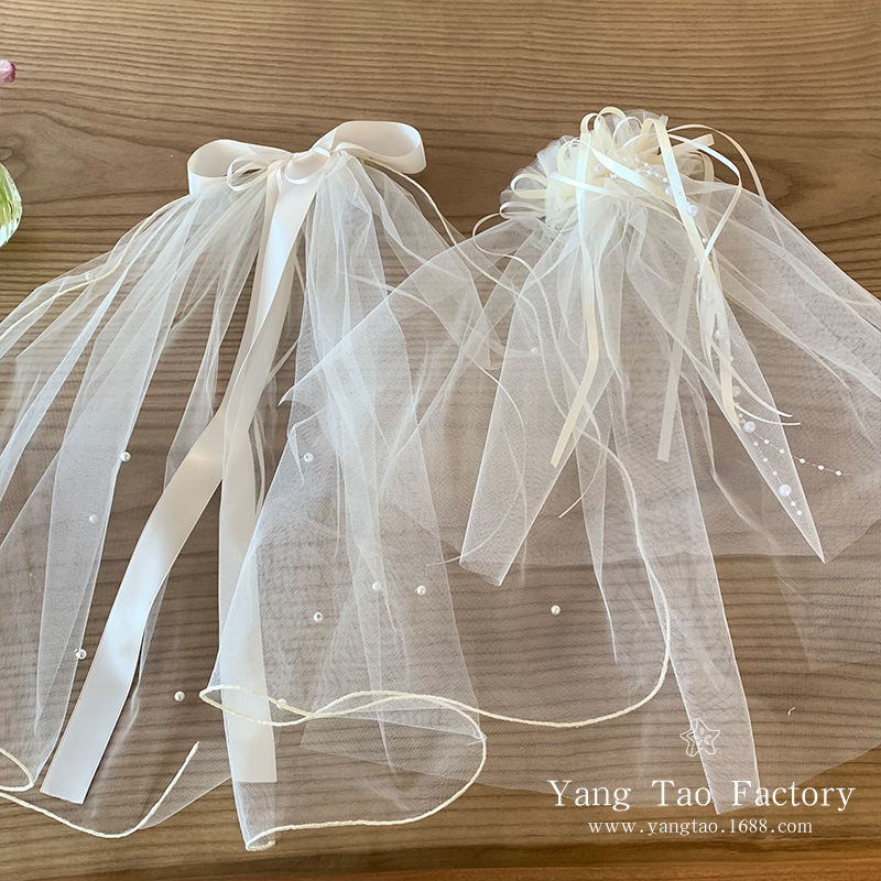 작은 빛 짧은 베일 머리핀을 아이보리 활 진주 베일 제안 라이센스 분위기 사진 소품스토어 가기