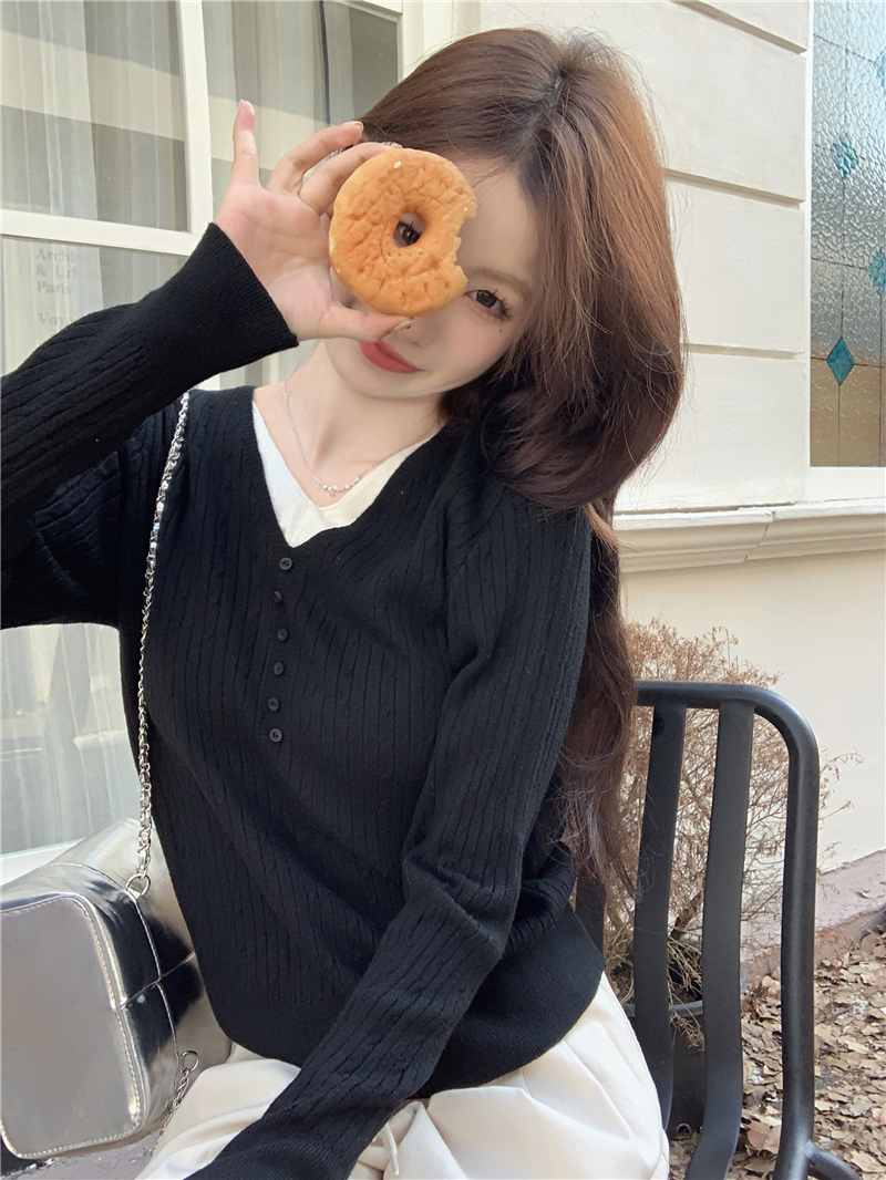 새로운 가짜 투피스 내베이스 스웨터 아우터 여성 플러스 사이즈 통통녀 슬리밍 작은 샤넬 스타일 니트 스웨터 살구색 탑