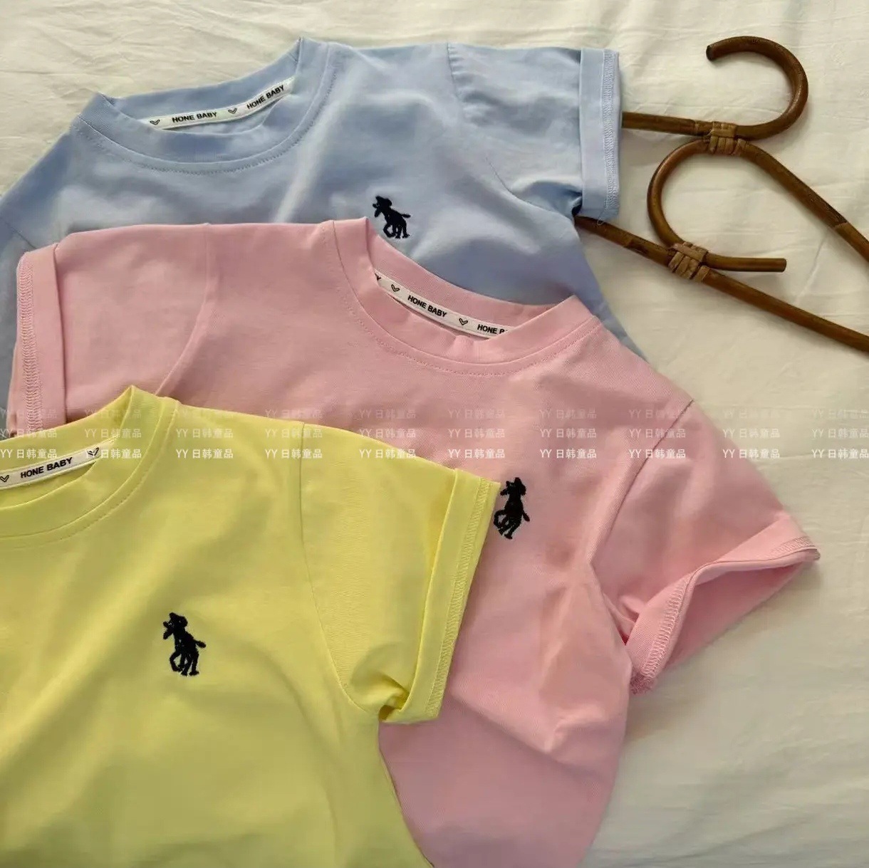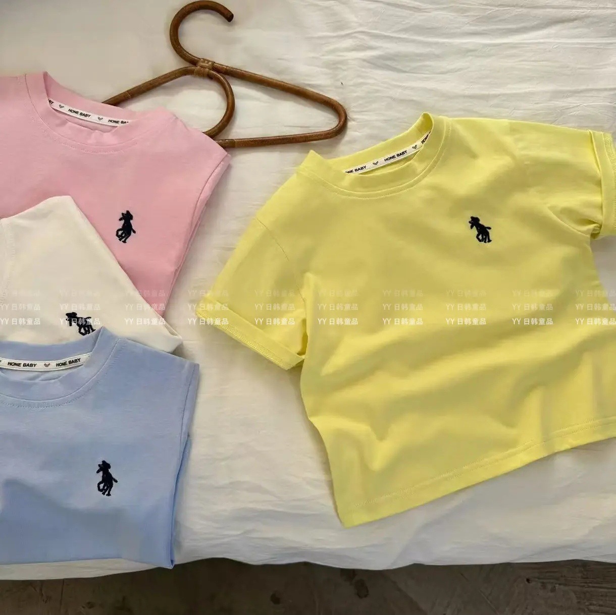 [작은 천 곰] 어린이 티셔츠 여름 새 소년 소녀 단색 올 매치 포니 반팔 T 아기 한국 티셔츠스토어 가기