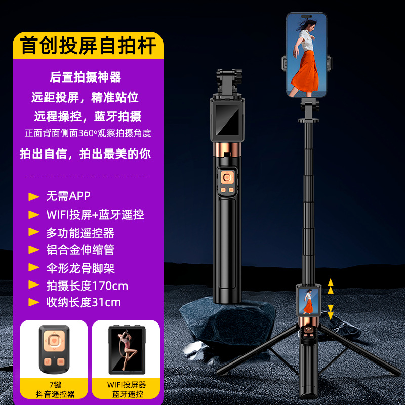 • CL07 스크린 프로젝션 셀카봉 - 빛이 없는 검정색