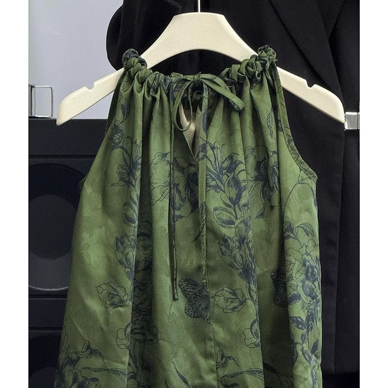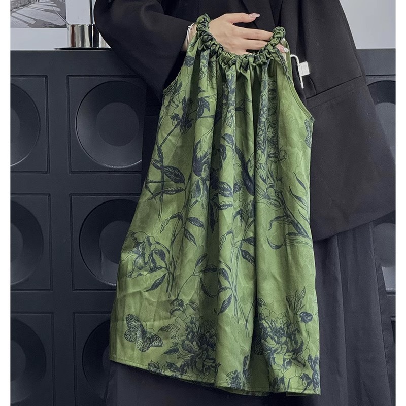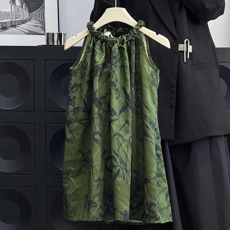 어린이 착용 새로운 중국 스타일 소녀의 다크 그린 꽃 원피스 여름 소녀의 외국 스타일 원피스 어린이 카미솔 스커트스토어 가기