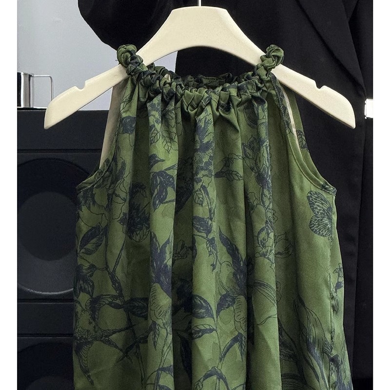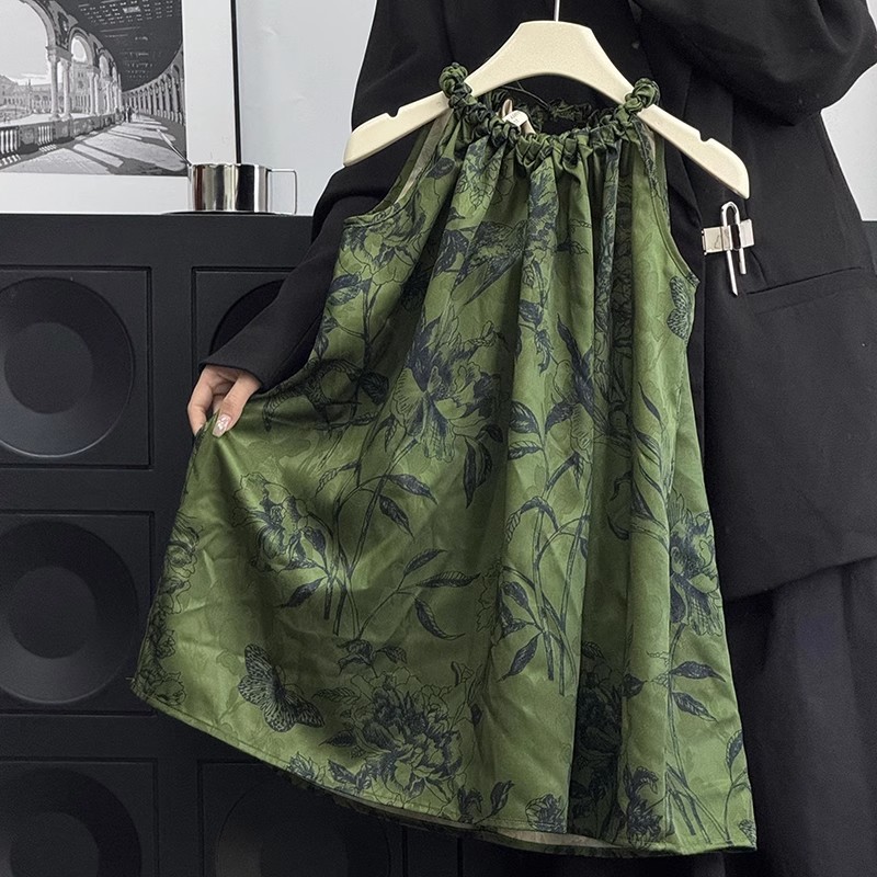 어린이 착용 새로운 중국 스타일 소녀의 다크 그린 꽃 원피스 여름 소녀의 외국 스타일 원피스 어린이 카미솔 스커트