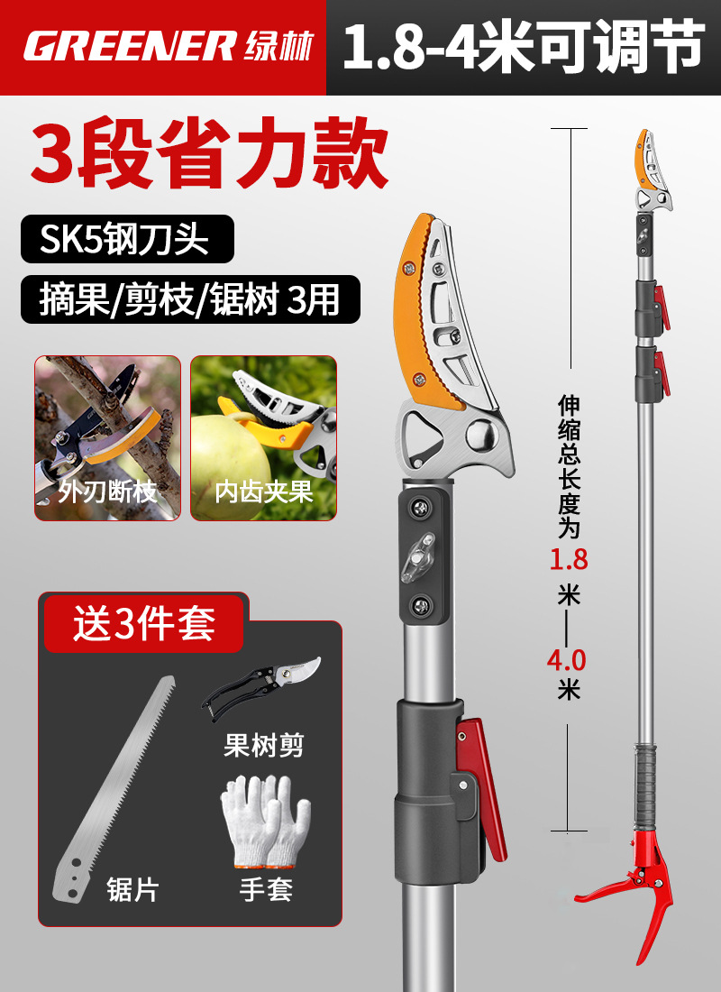 • 3단 노동절약형 텔레스코픽 모델 [1.8- 4m ] 톱날 + 대형 접이식 톱 포함