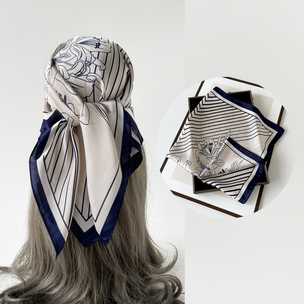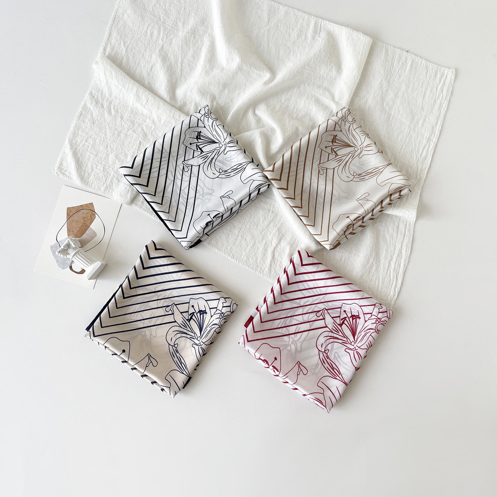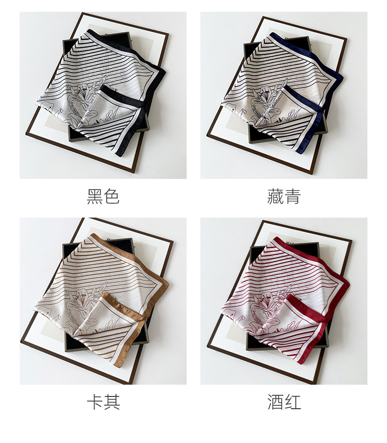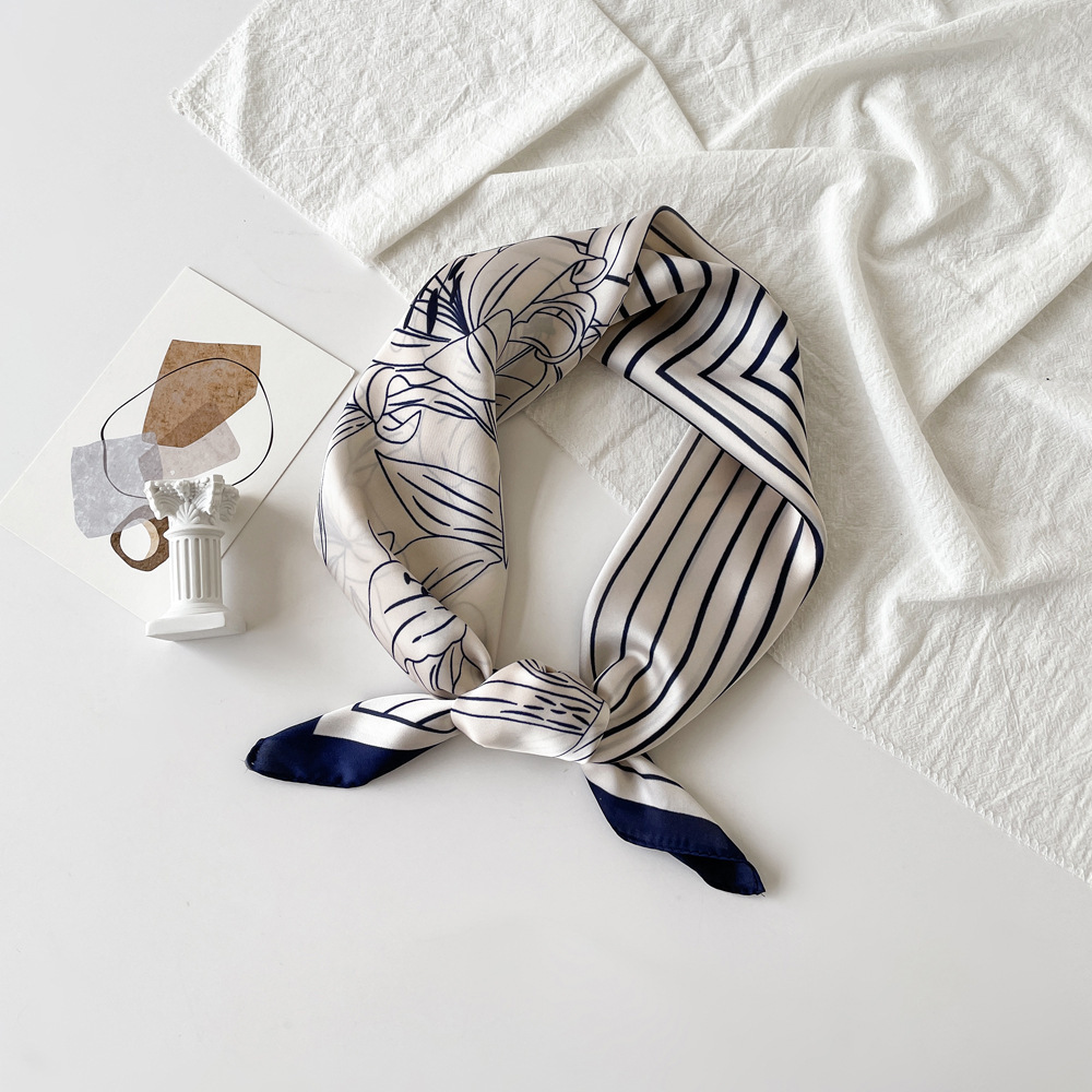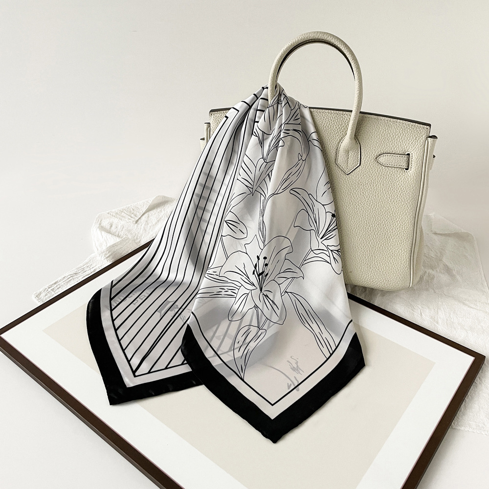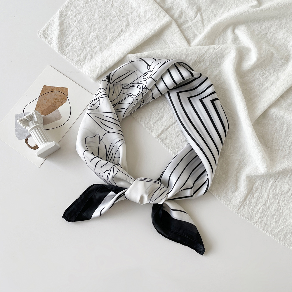 국경 간 대외 무역 새로운 새틴 모조 실크 스카프 여성의 흑백 라인 인쇄 얇은 작은 광장 스카프 헤드 스카프 헤어 벨트스토어 가기