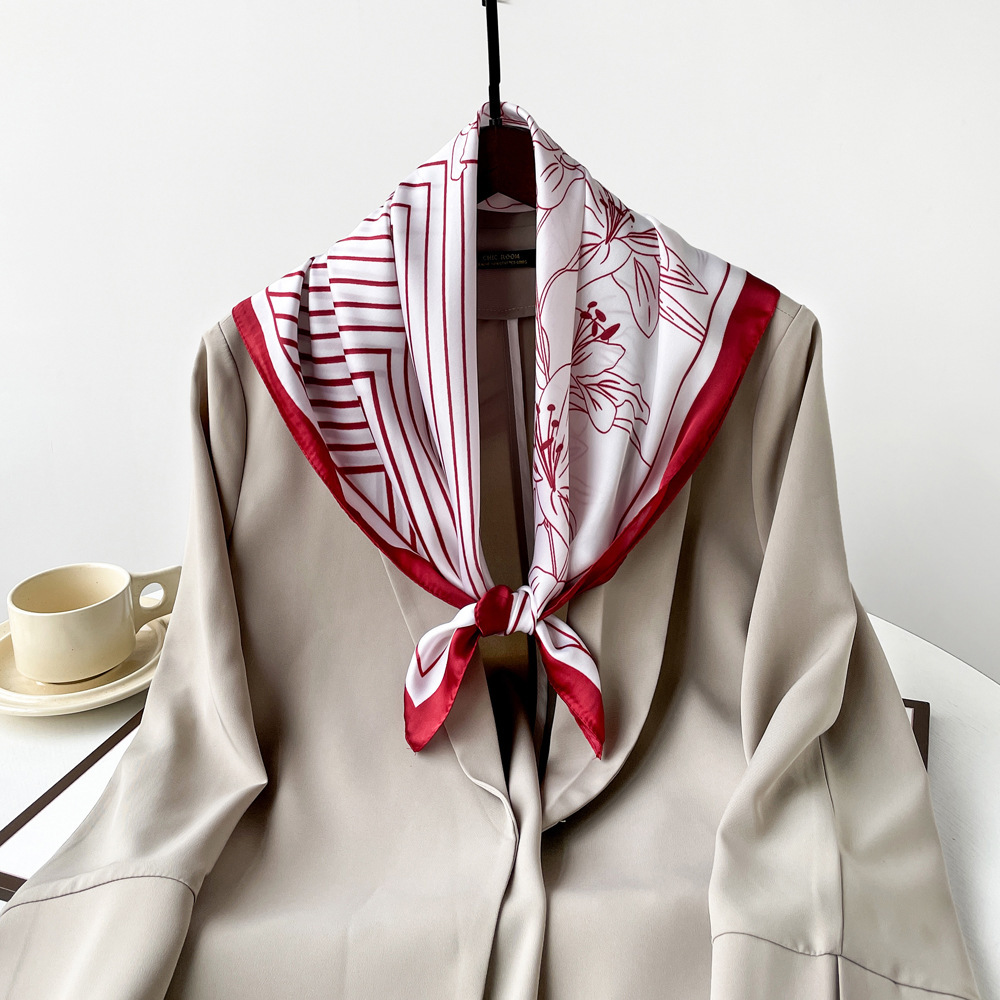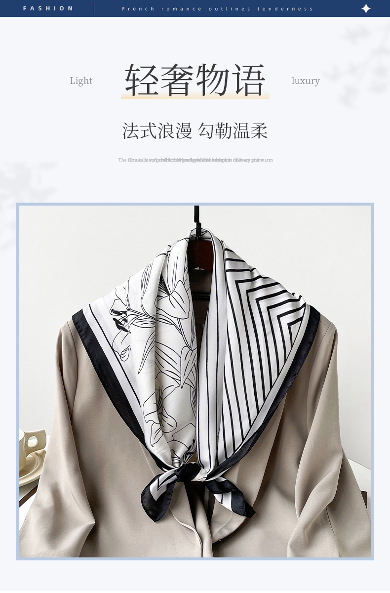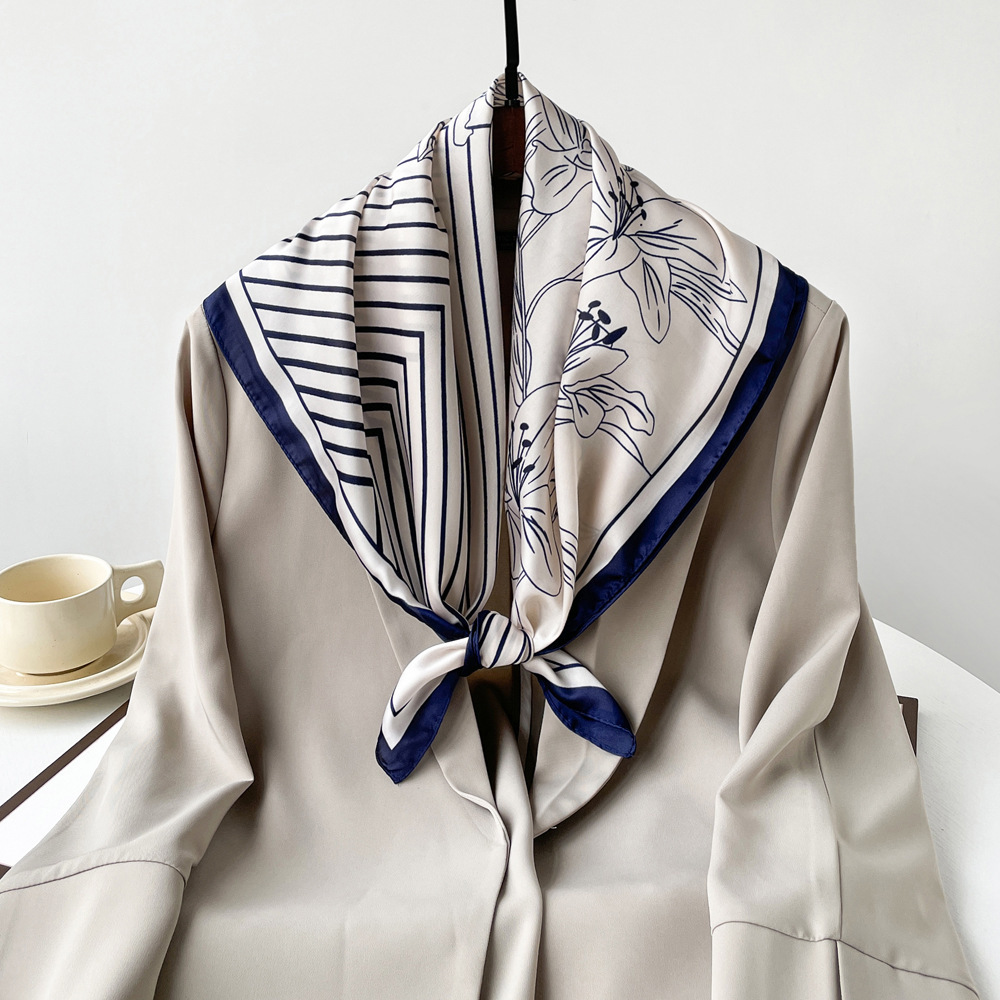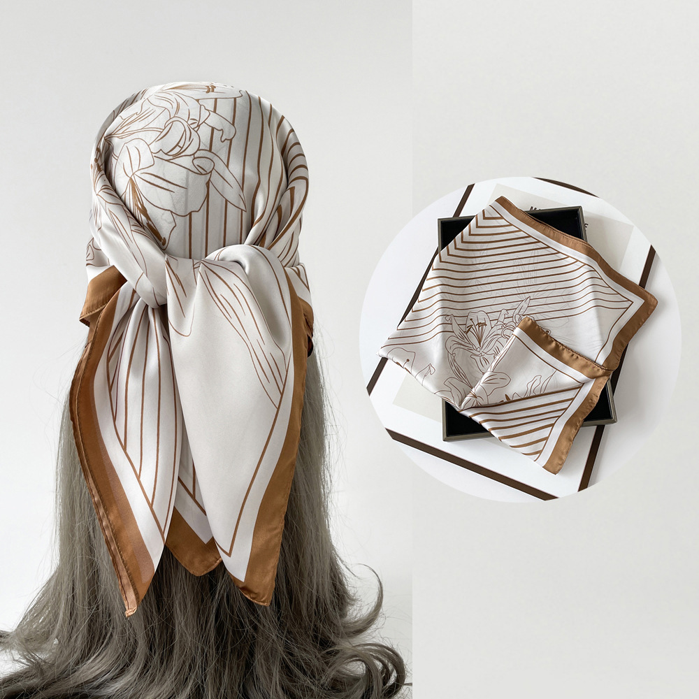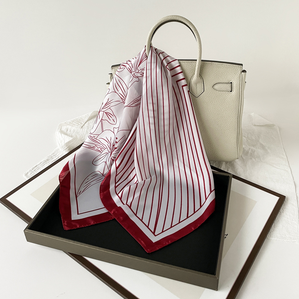 국경 간 대외 무역 새로운 새틴 모조 실크 스카프 여성의 흑백 라인 인쇄 얇은 작은 광장 스카프 헤드 스카프 헤어 벨트스토어 가기