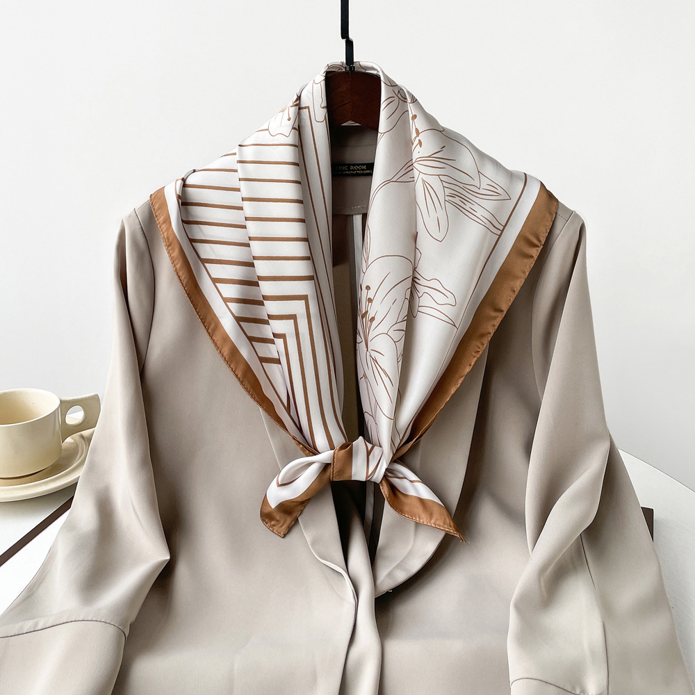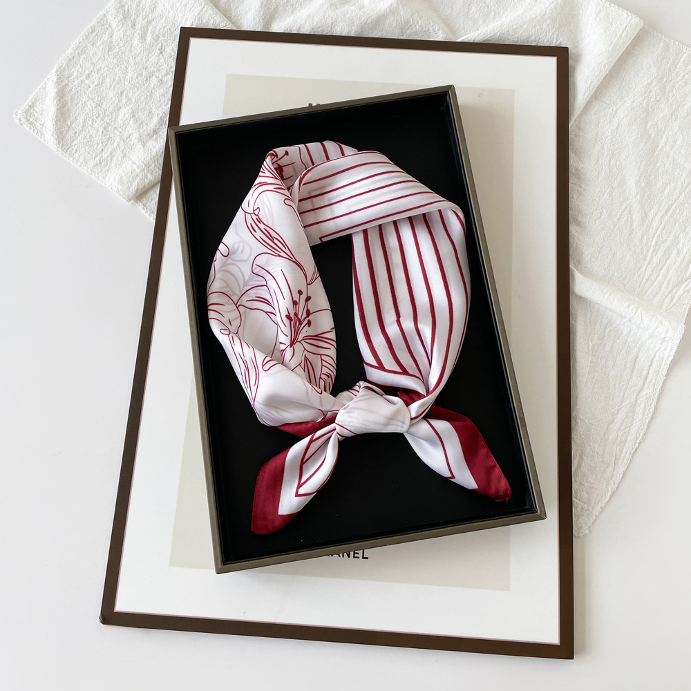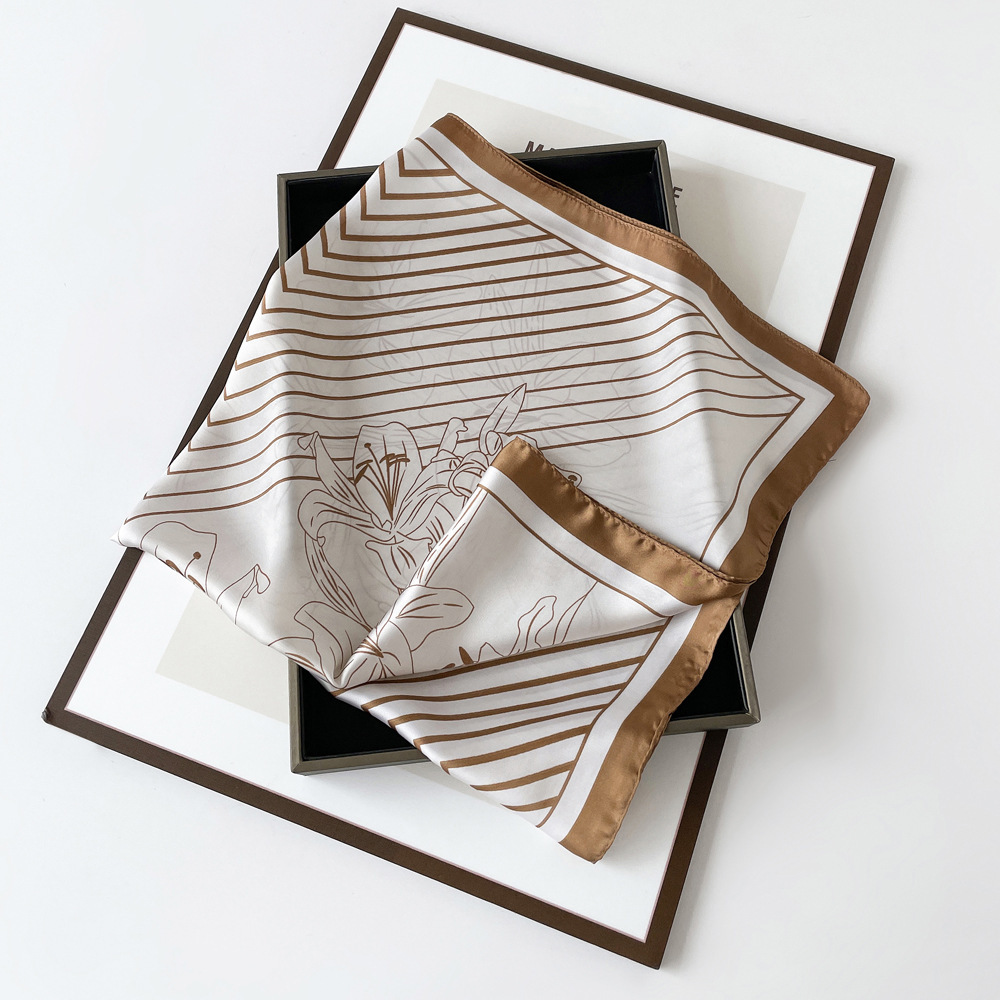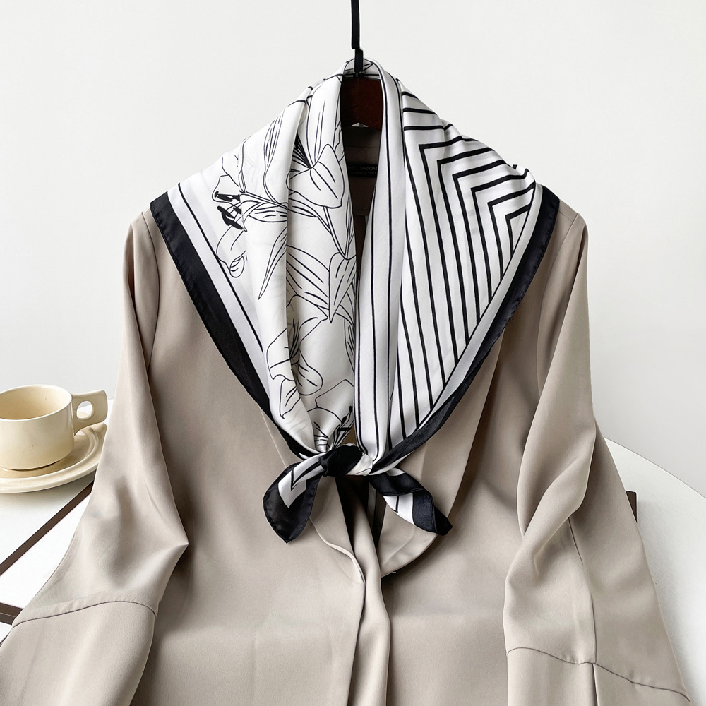 국경 간 대외 무역 새로운 새틴 모조 실크 스카프 여성의 흑백 라인 인쇄 얇은 작은 광장 스카프 헤드 스카프 헤어 벨트