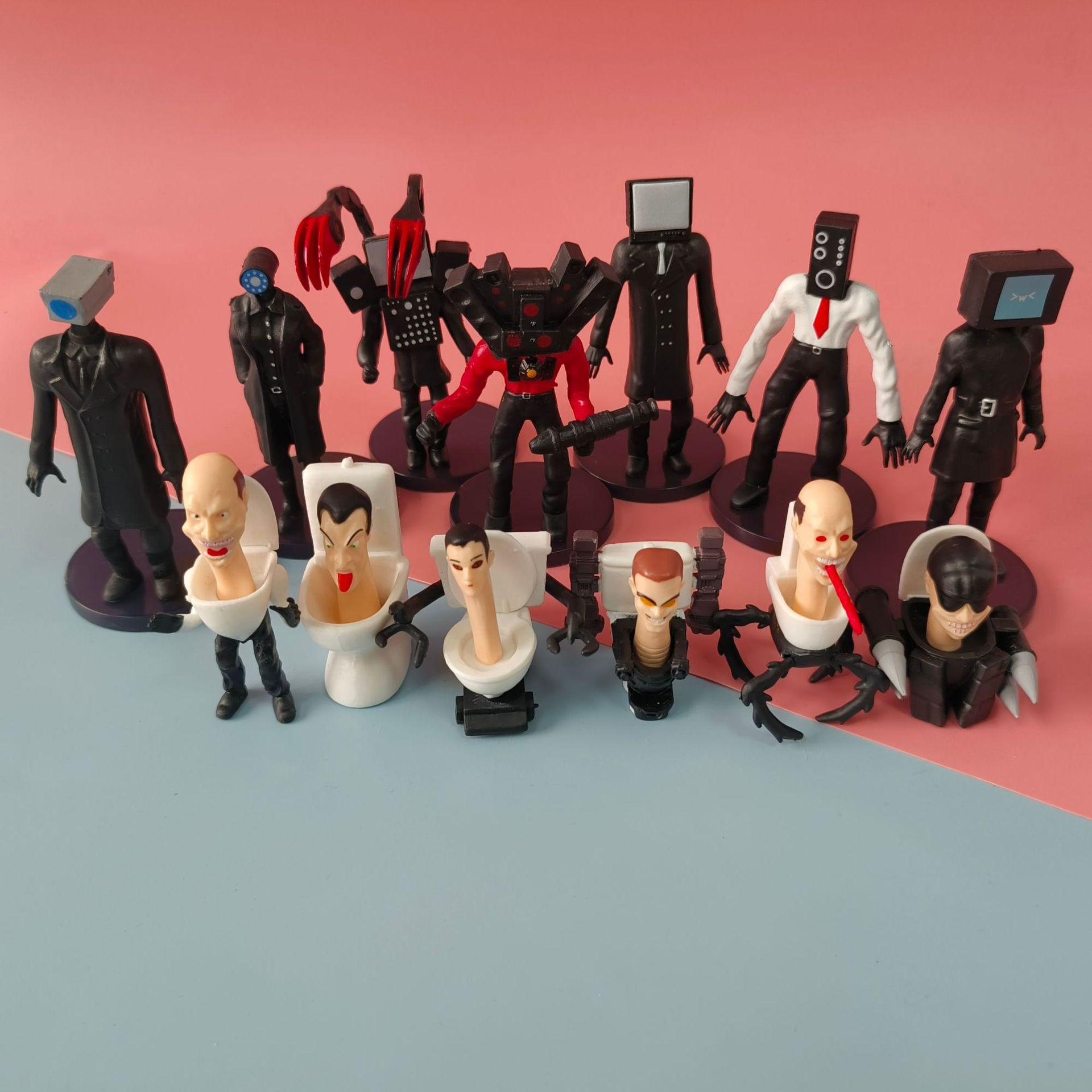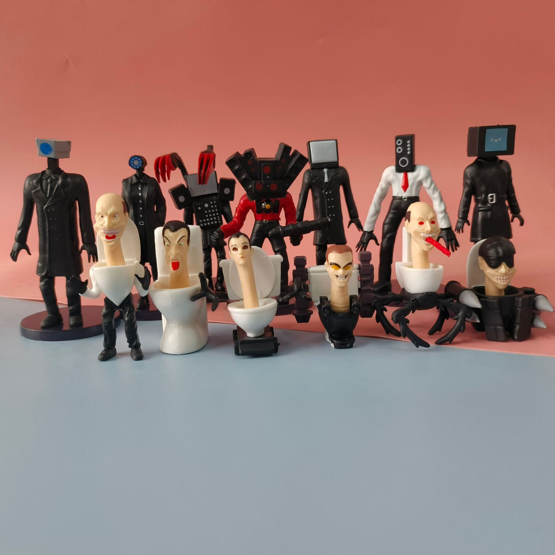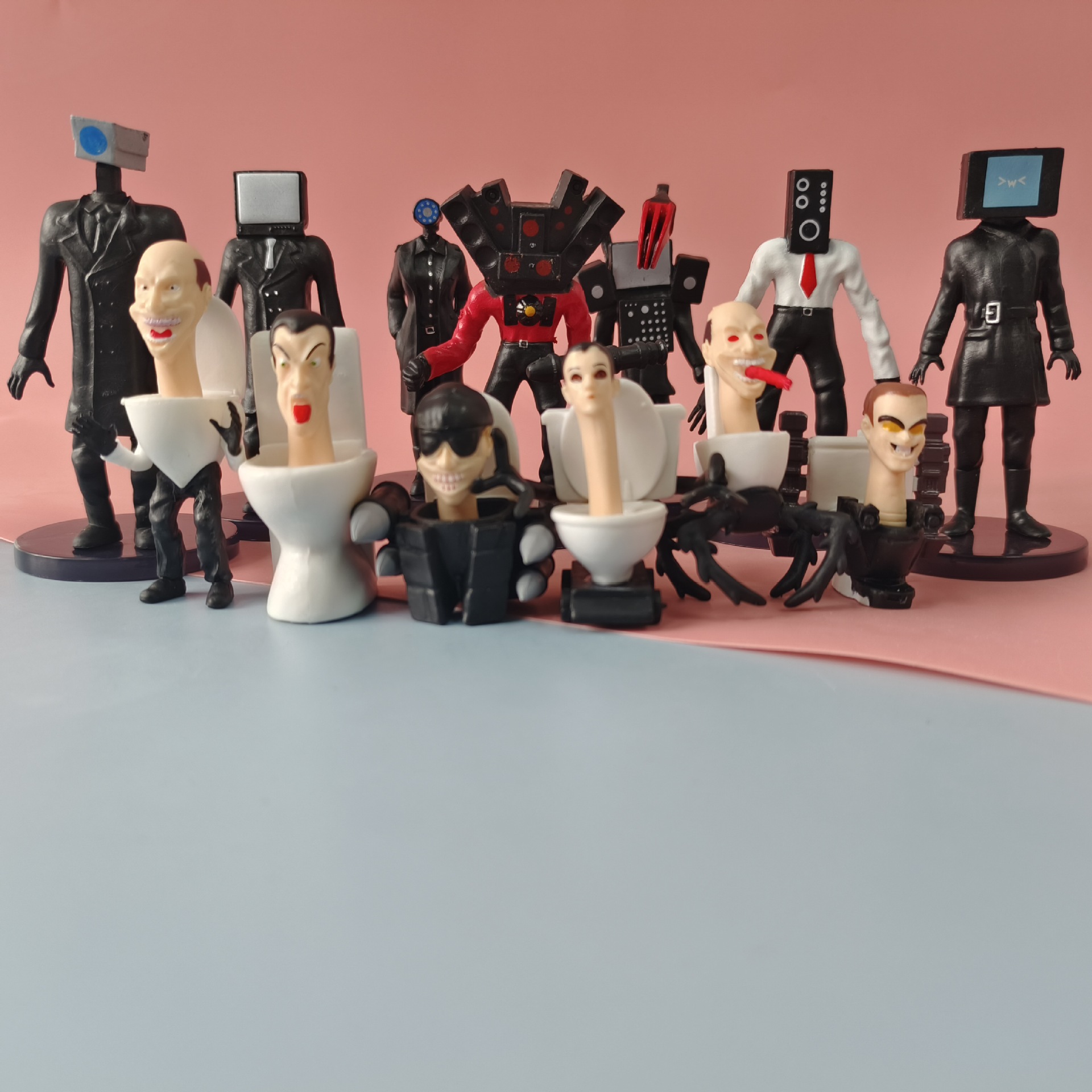 국경 간 화장실 남자와 모니터 남자 장난감 전쟁 남자 대 남자 대 남자 모델 인형 남녀 선물