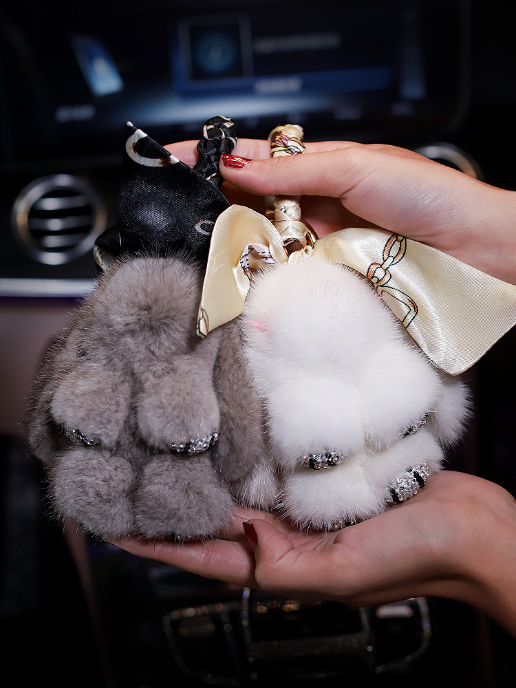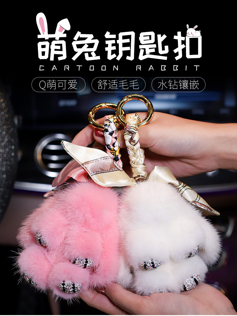 밍크 모피 귀여운 귀여운 귀여운 귀여운 귀여운 귀여운 토끼 자동차 키 체인 펜던트 다이아몬드 토끼 가방 장식 여성 키스토어 가기