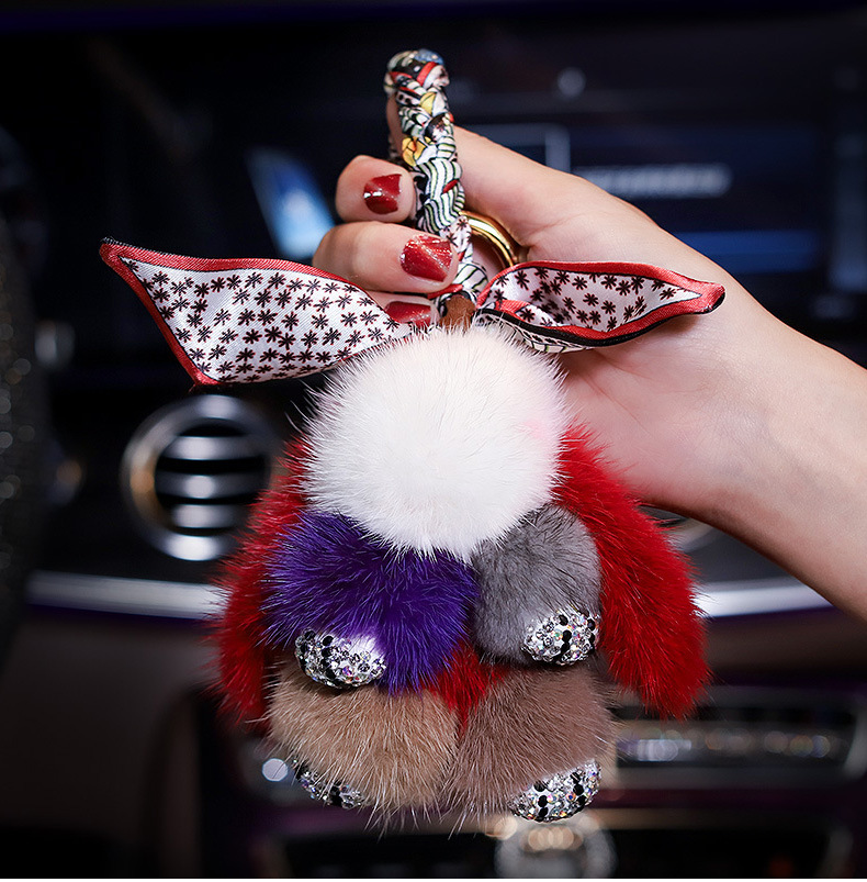 밍크 모피 귀여운 귀여운 귀여운 귀여운 귀여운 귀여운 토끼 자동차 키 체인 펜던트 다이아몬드 토끼 가방 장식 여성 키