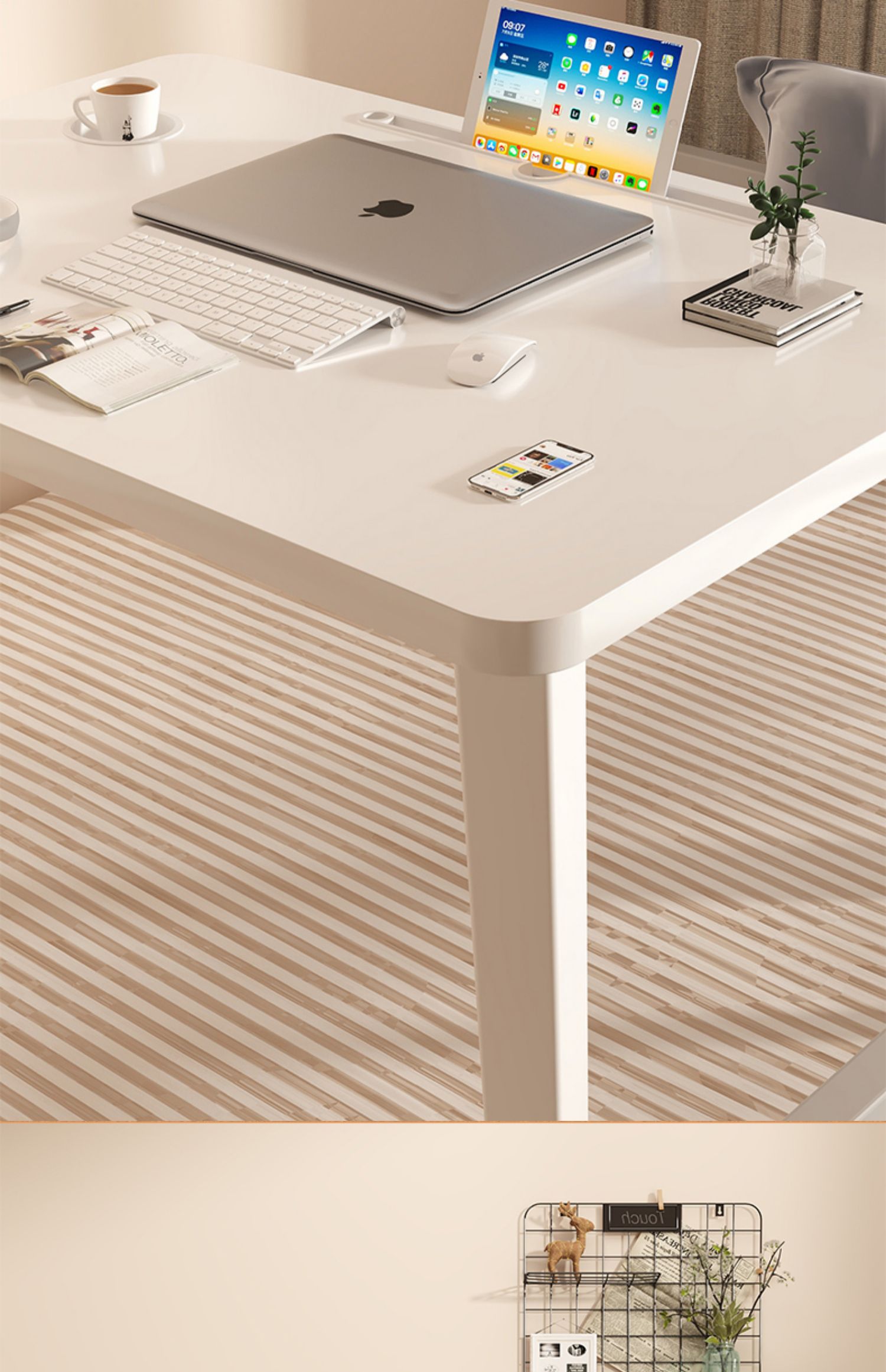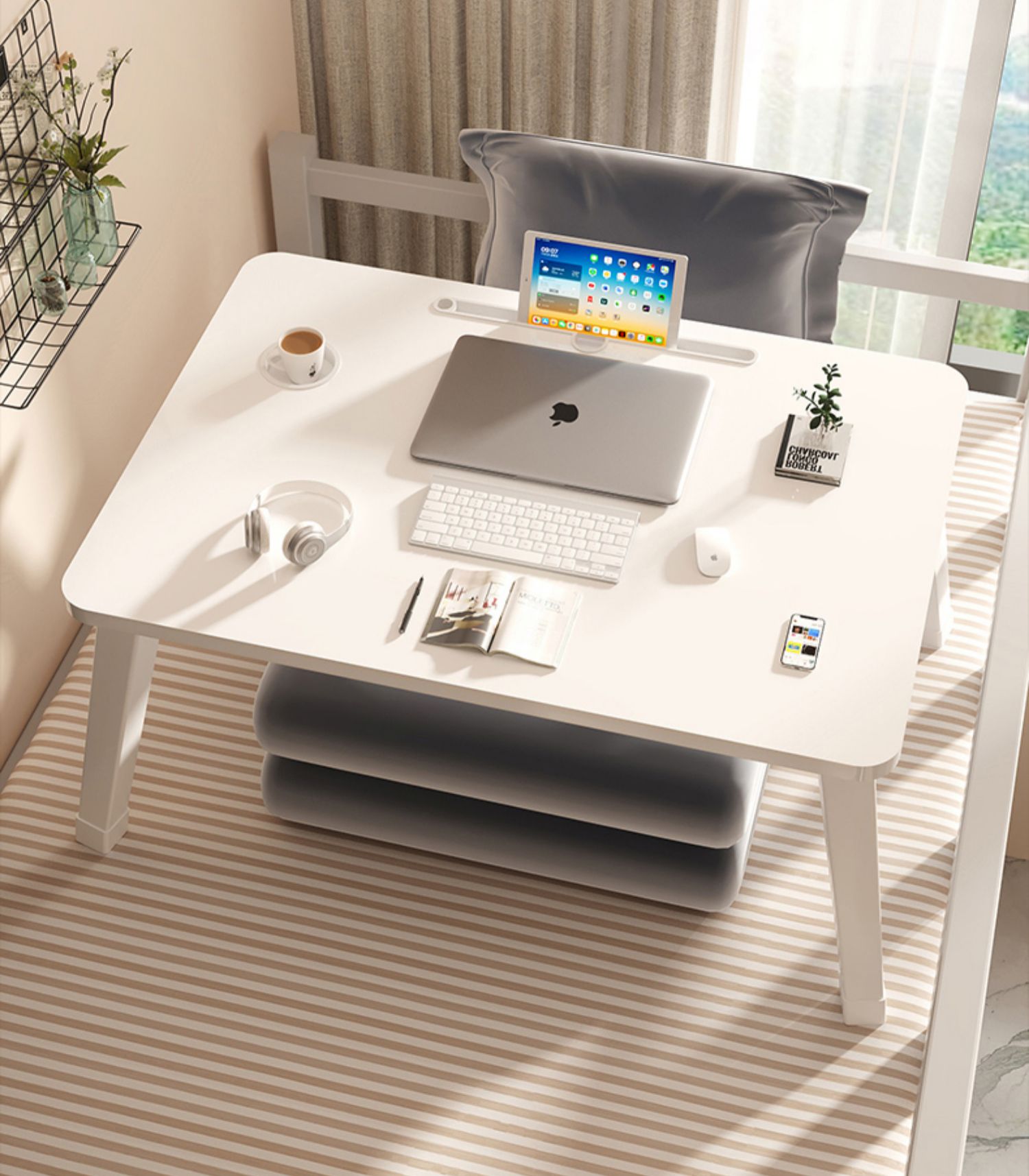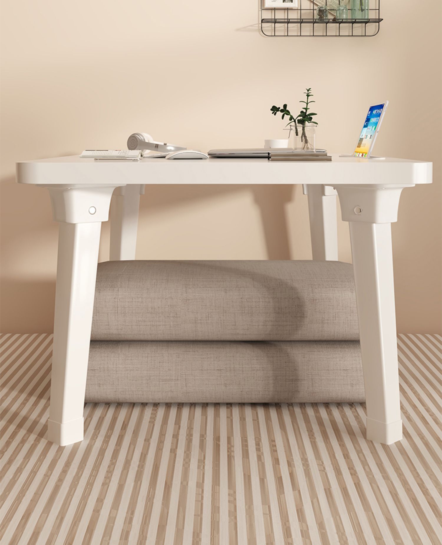 • [초대형 공룡 다리 업그레이드] 펄 화이트 80*60*29-37cm 카드 슬롯 + 컵 홀더 포함