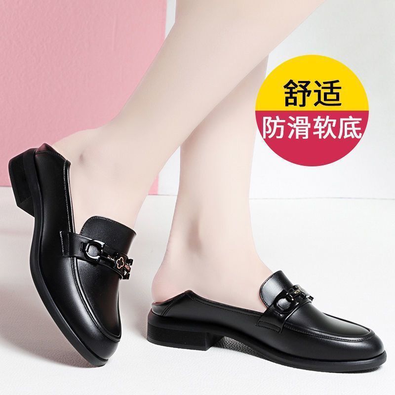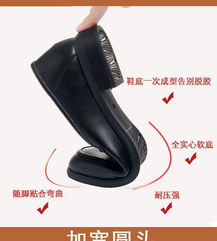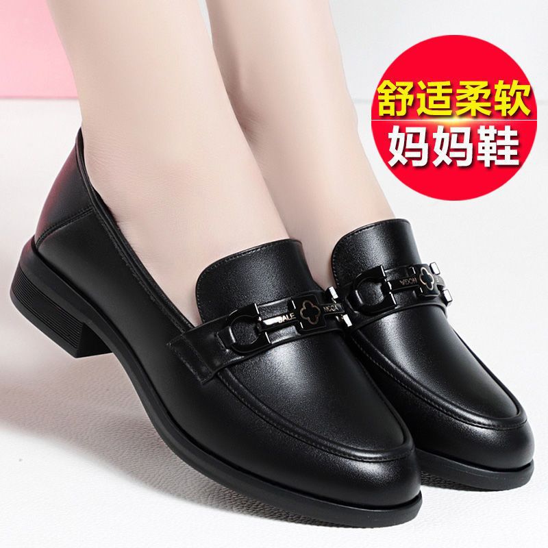 봄과 가을 여성용 도매 신발, 어머니 신발, 여성용 가죽 신발, 플랫 미드 힐 싱글 슈즈, 부드러운 가죽 부드러운 밑창 슬립 온 로퍼