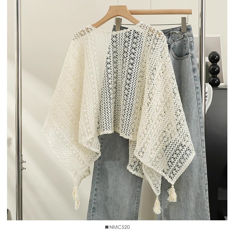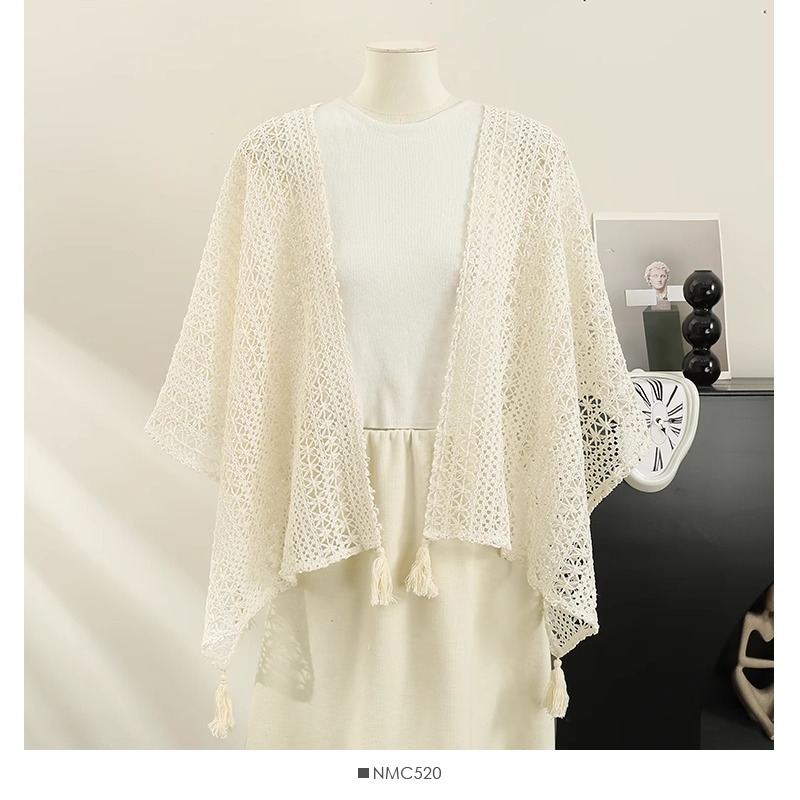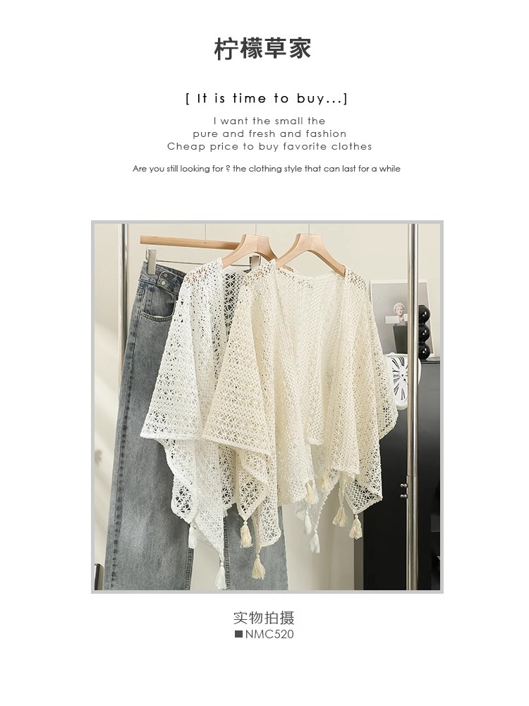 빈티지 민족 휴가 스타일 니트 술 카디건 여성용 얇은 봄과 가을 작은 목도리 스커트 레이스 블라우스스토어 가기