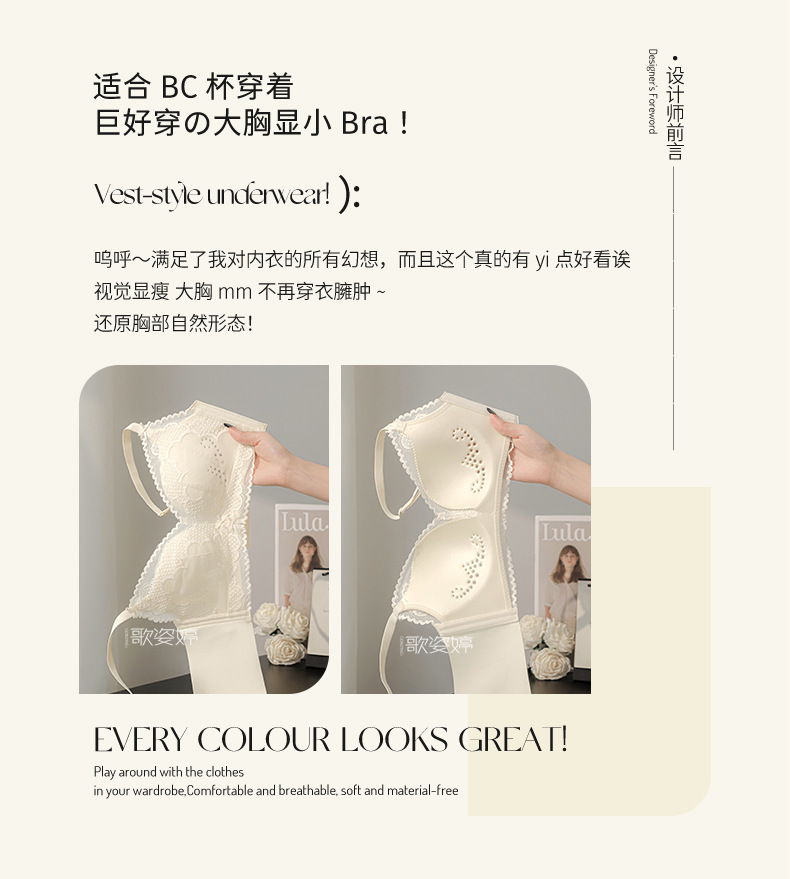 초박형 속옷 여성용 대형 흉부, 스틸 링 홀 컵 없는 작은 가슴 패러미 처짐 방지 여름 경량 브래지어스토어 가기