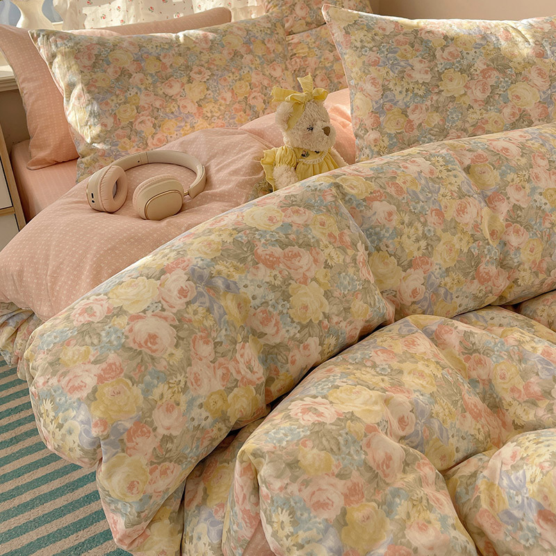 침구 4 피스 코튼 4 시즌 유니버설 침대 시트 퀼트 커버 침대 모자 퀼트 커버 학생 기숙사 3 피스 세트