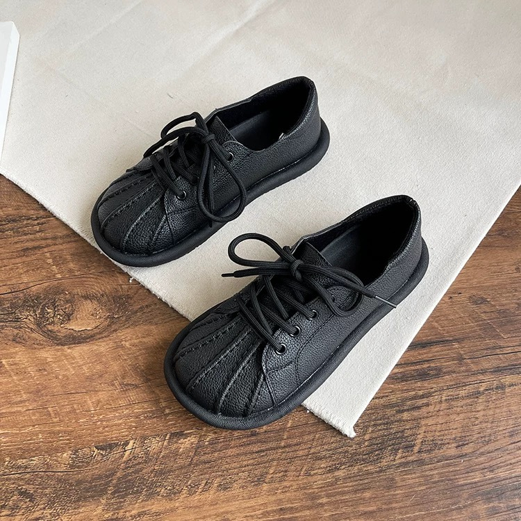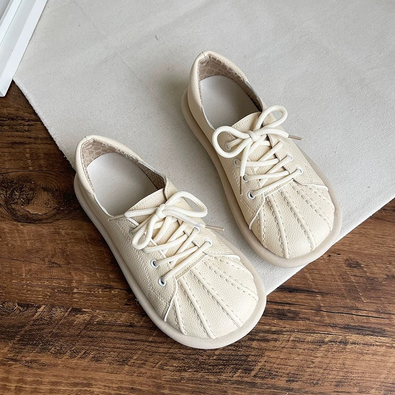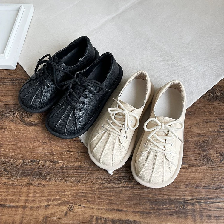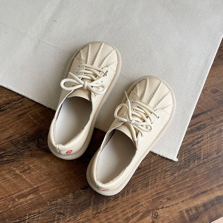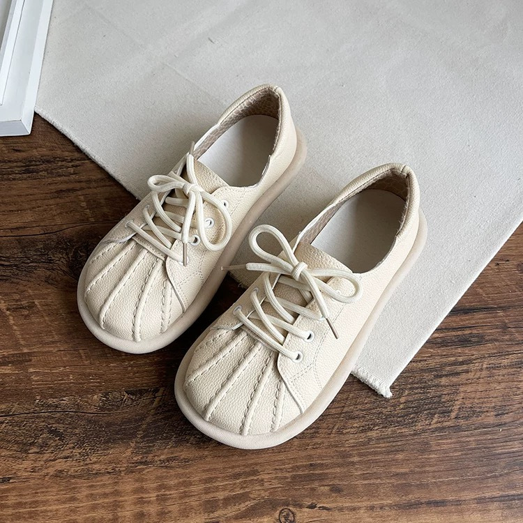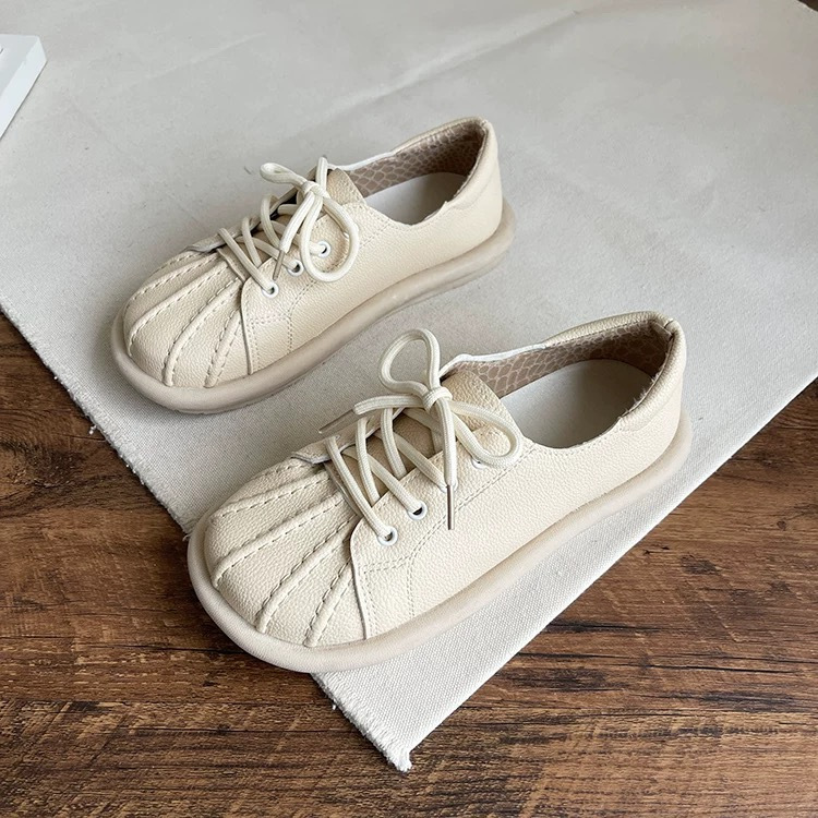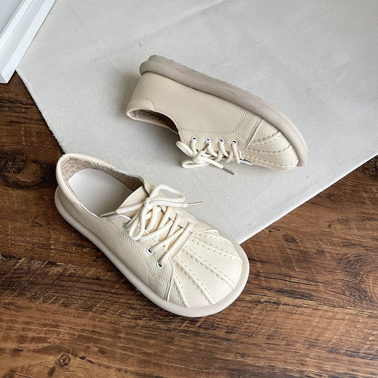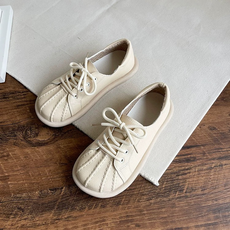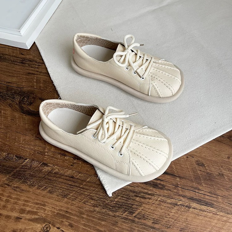 오리지널 쉘 헤드 싱글 신발 예술적 일본 가죽 신발 여성의 2025 봄 새로운 학생 캐주얼 플랫 화이트 신발