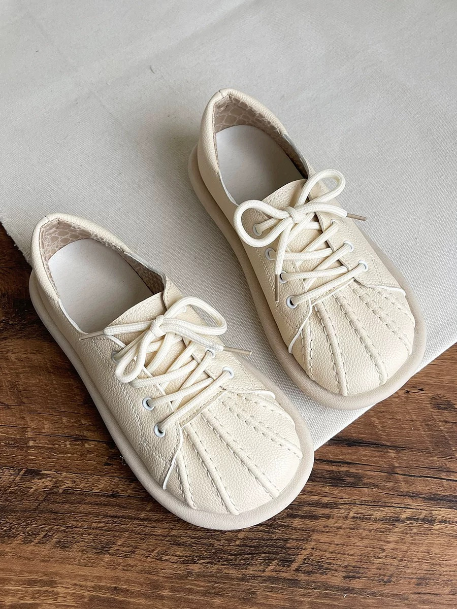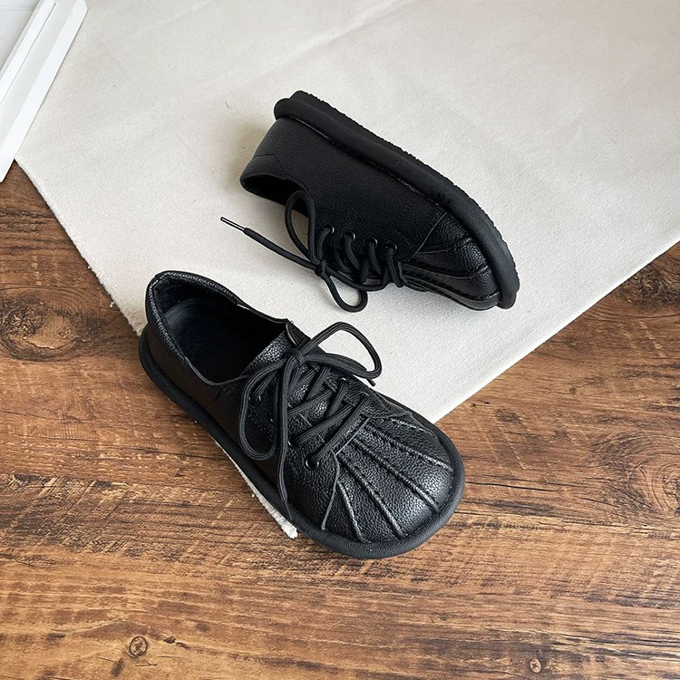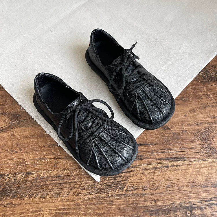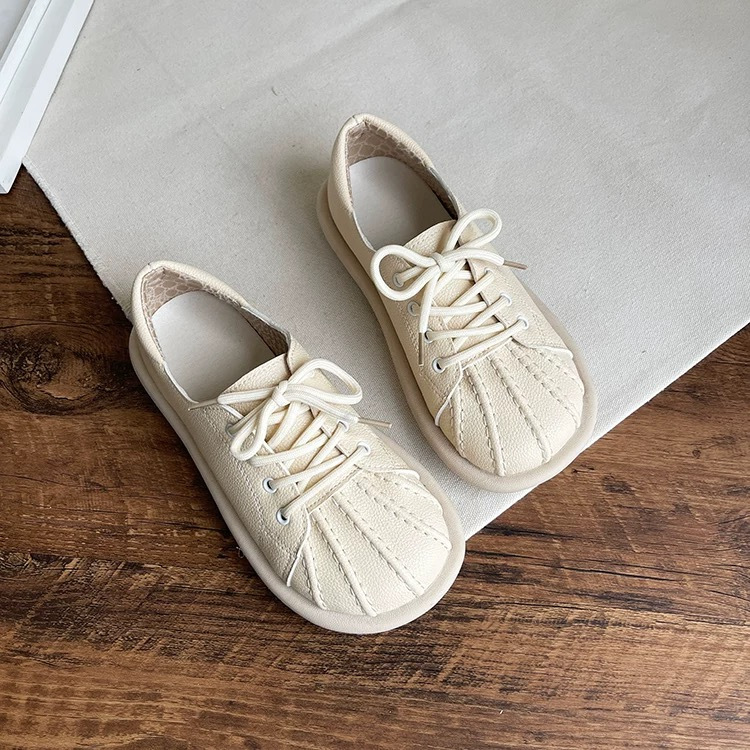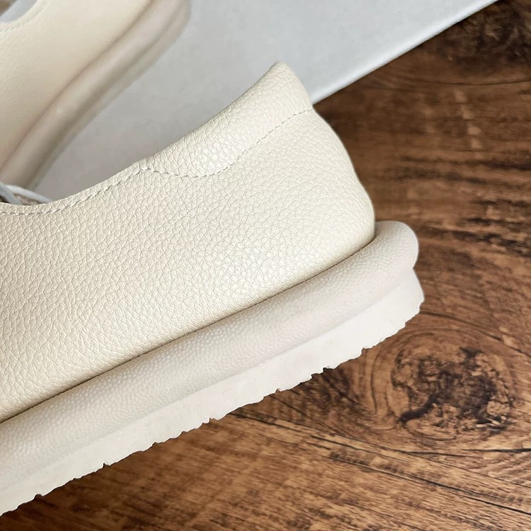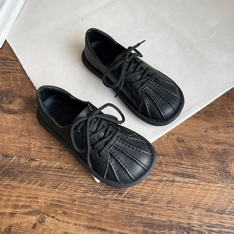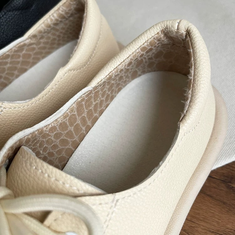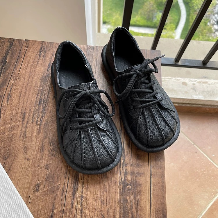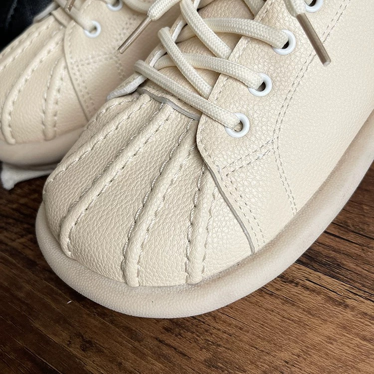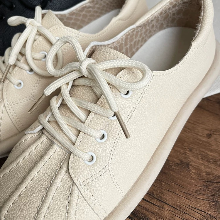 오리지널 쉘 헤드 싱글 신발 예술적 일본 가죽 신발 여성의 2025 봄 새로운 학생 캐주얼 플랫 화이트 신발