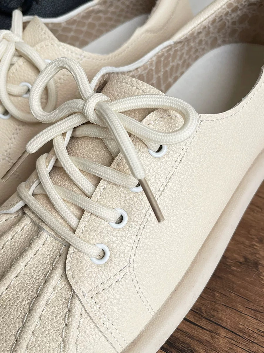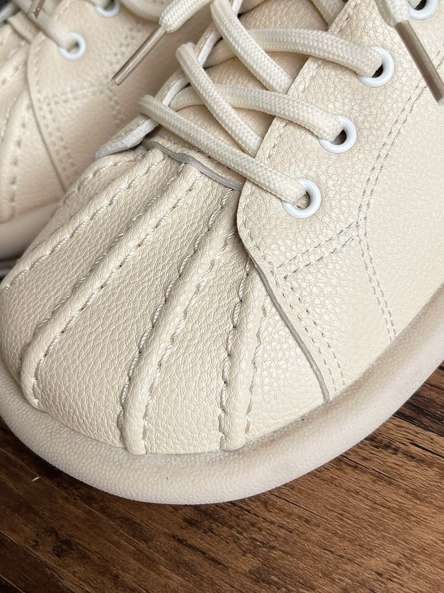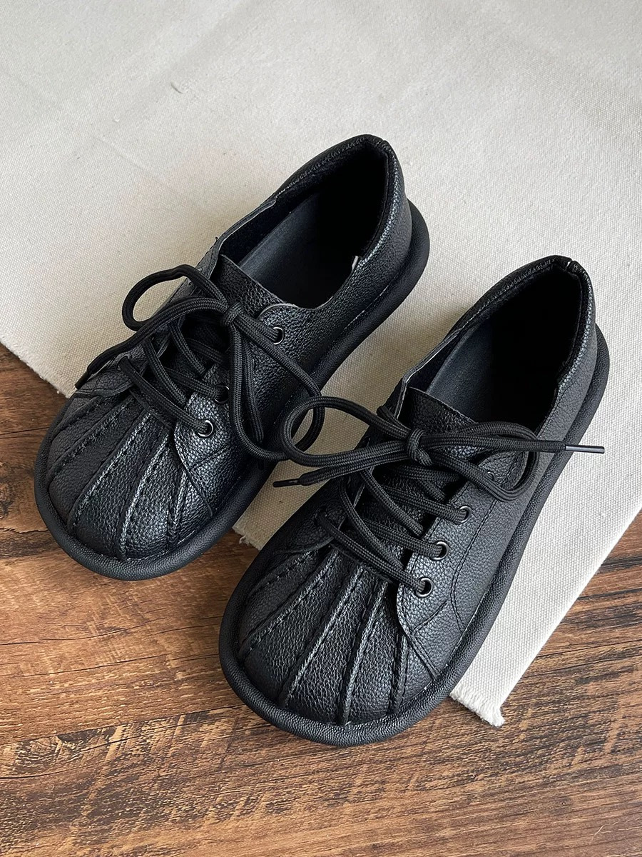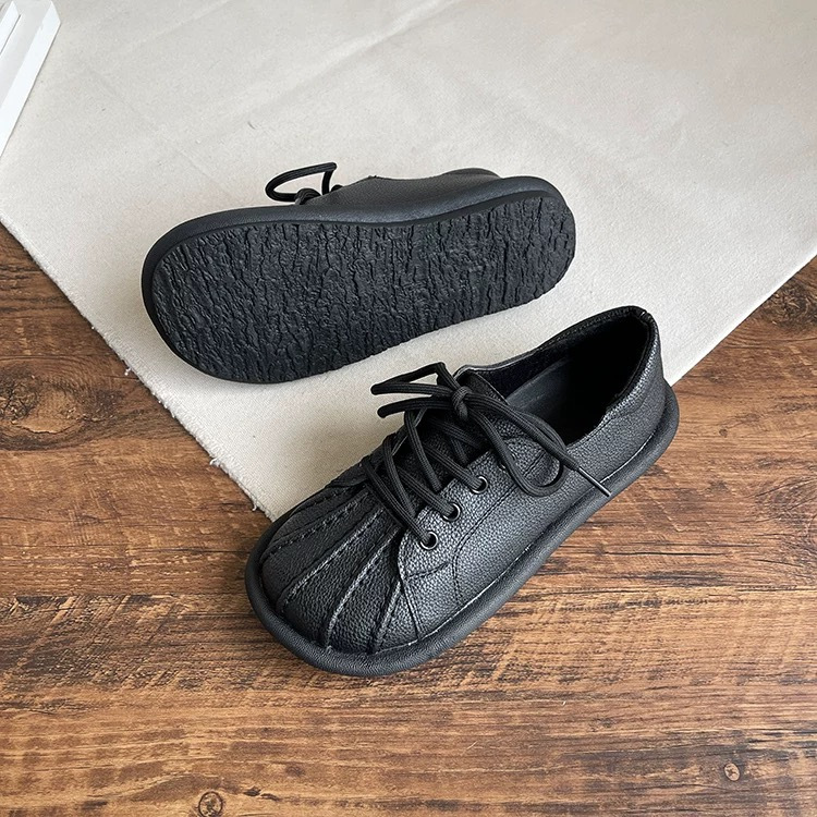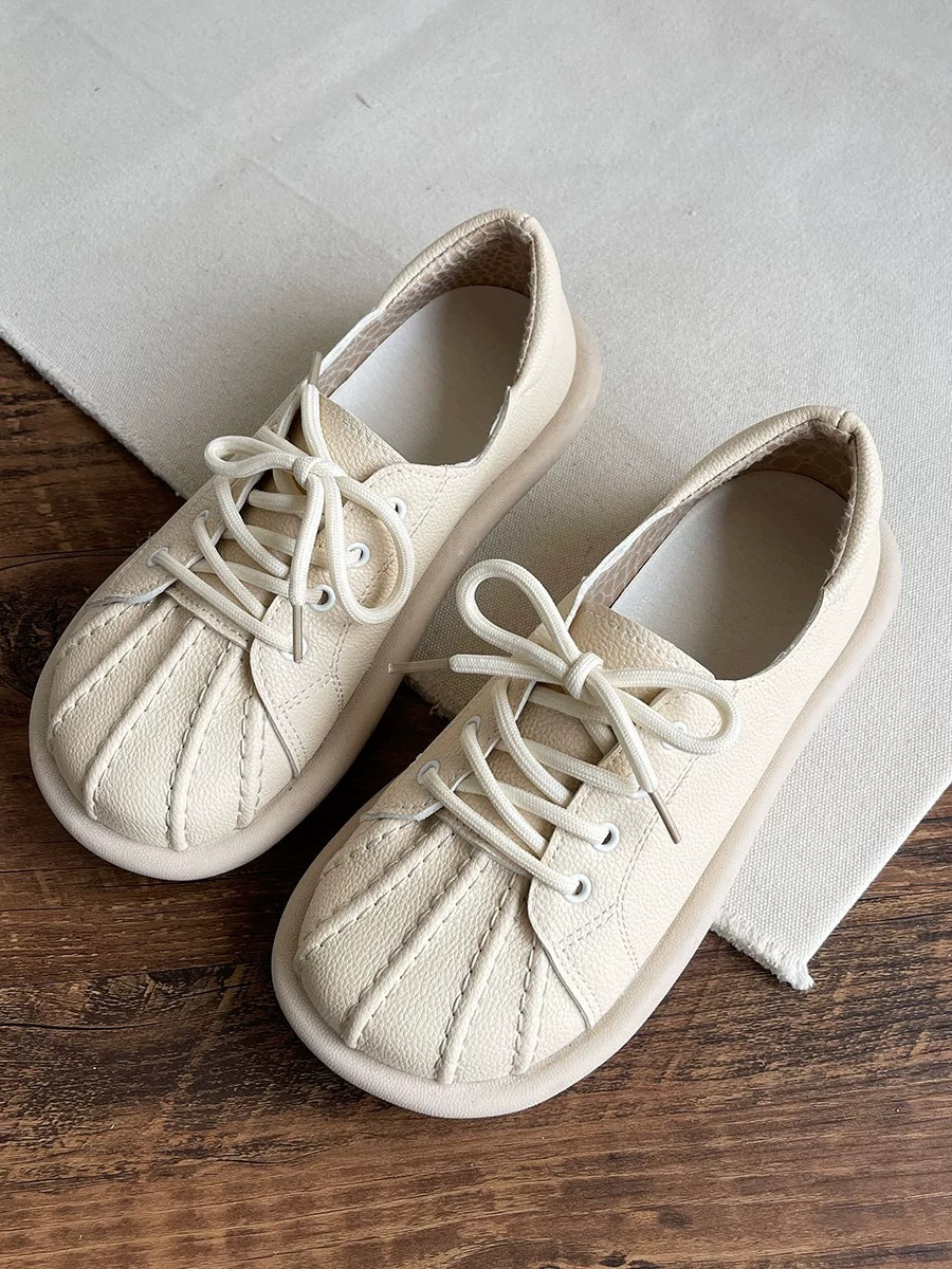 오리지널 쉘 헤드 싱글 신발 예술적 일본 가죽 신발 여성의 2025 봄 새로운 학생 캐주얼 플랫 화이트 신발
