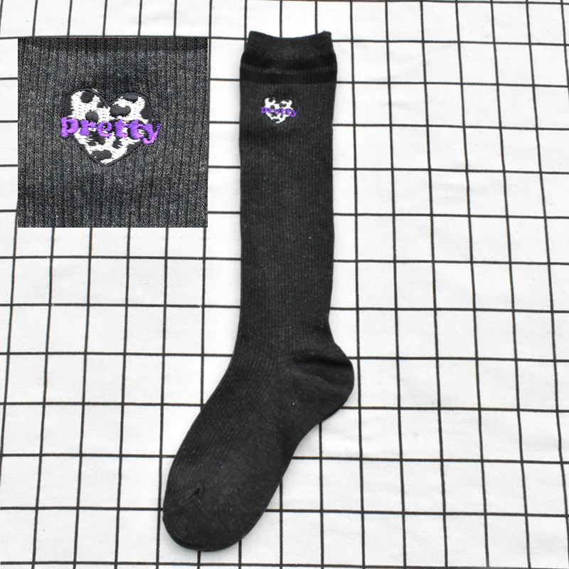 여성용 자수 송아지 양말 더블 바늘 수직 패턴 학생 양말 jk 유니폼 양말 달콤한 일본 양말 면화 대외 무역
