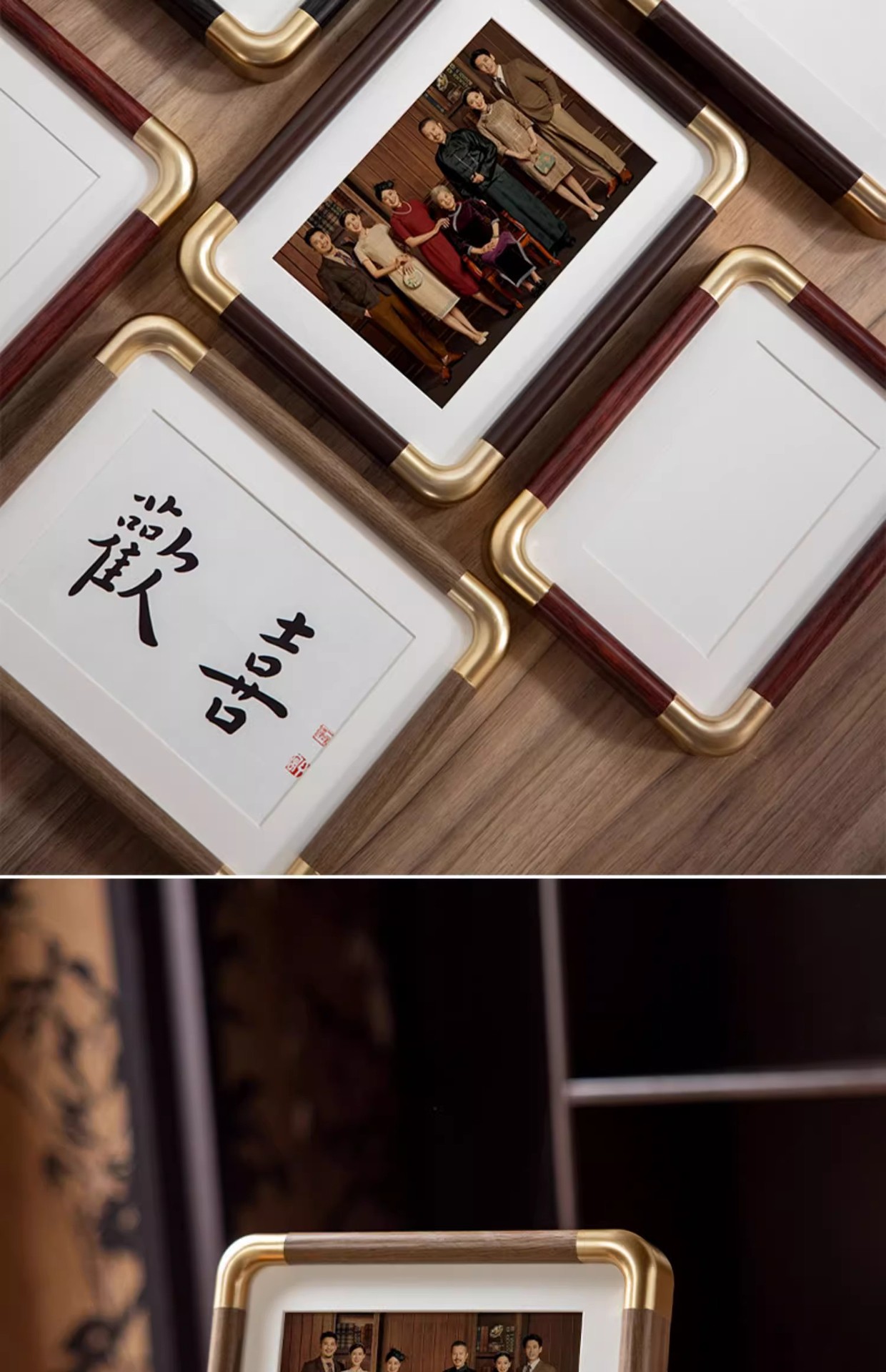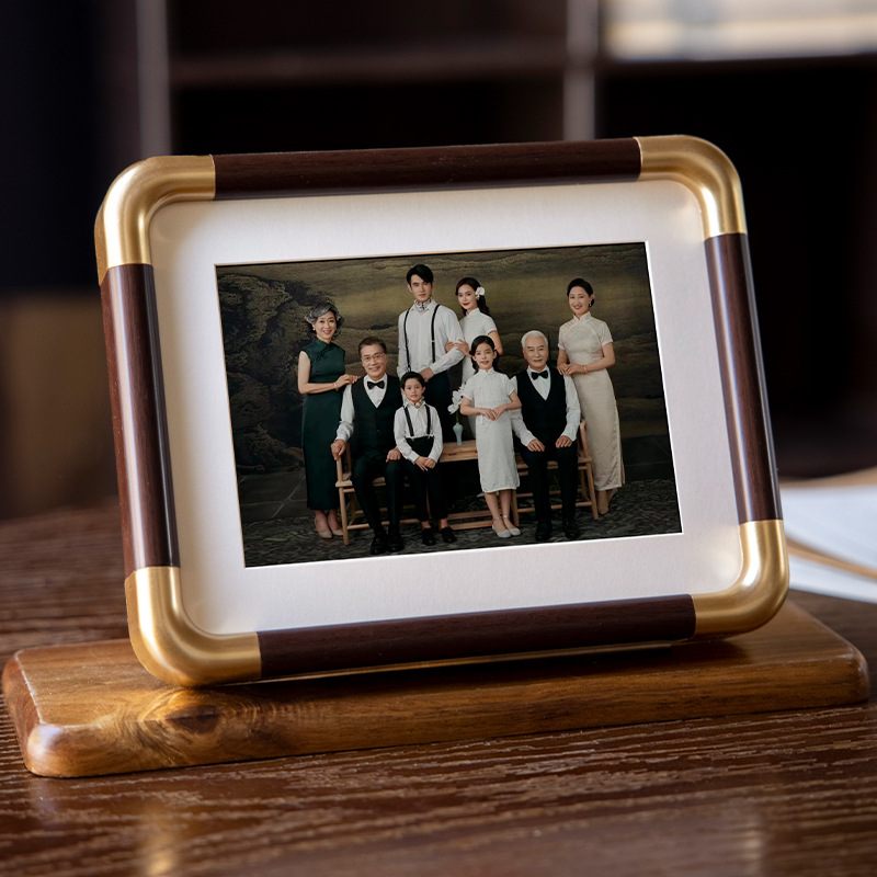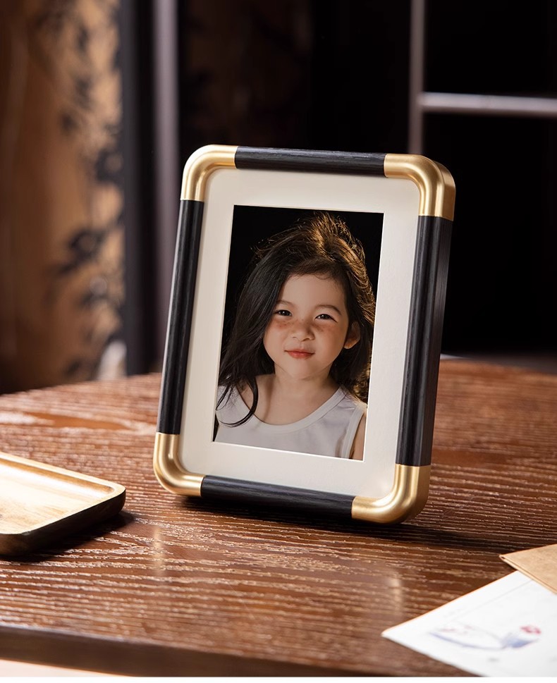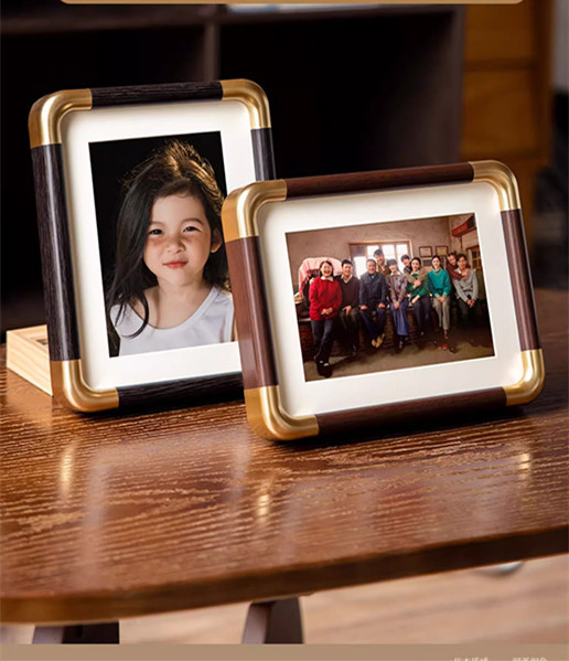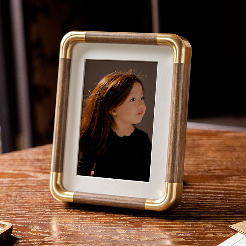 모조 구리 코너 사진 프레임 단단한 나무 질감 사진 프레임 테이블 도매 하이 엔드 데스크탑 장식 부티크 사진 프레임 공장 직접 판매스토어 가기