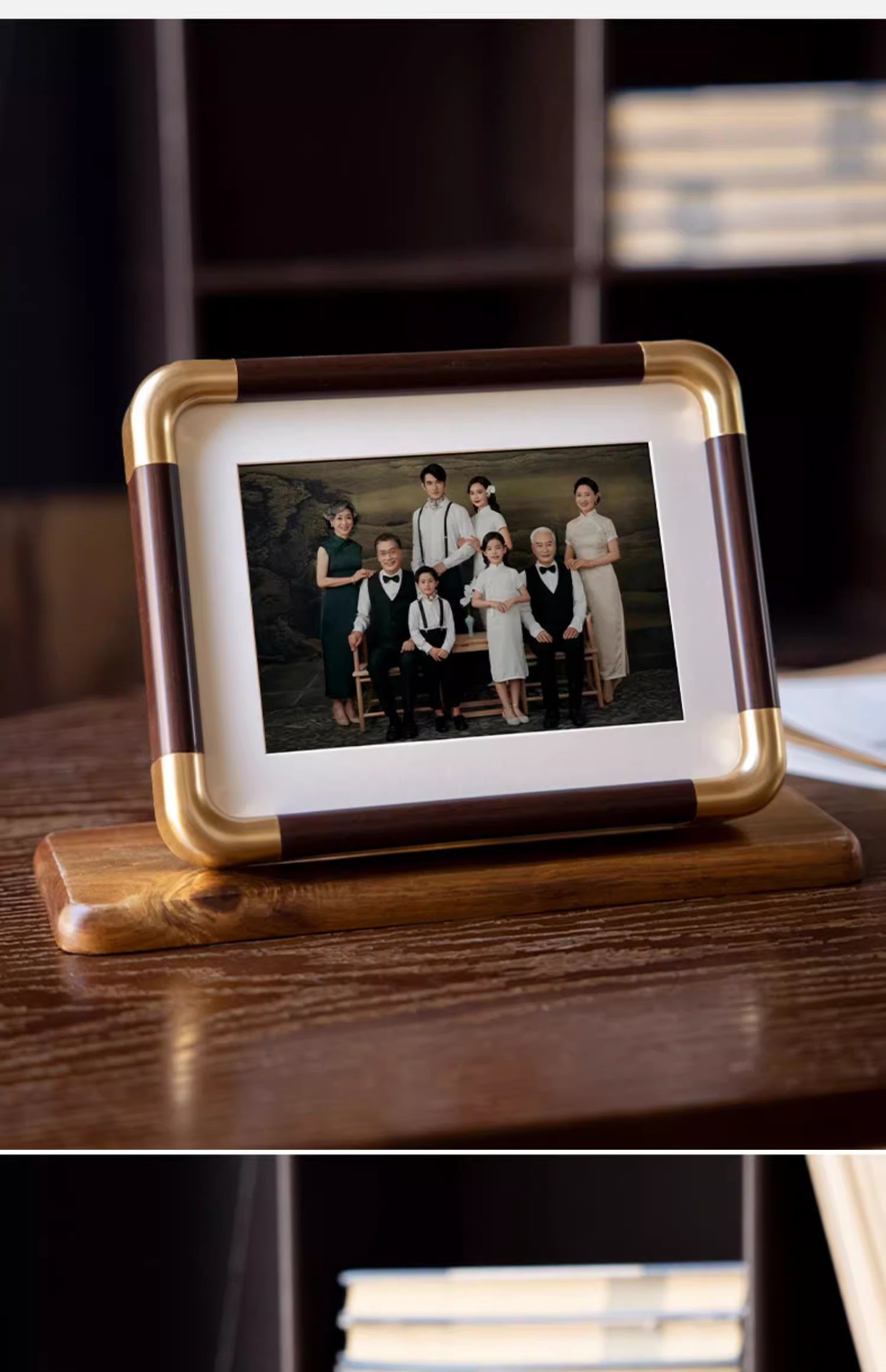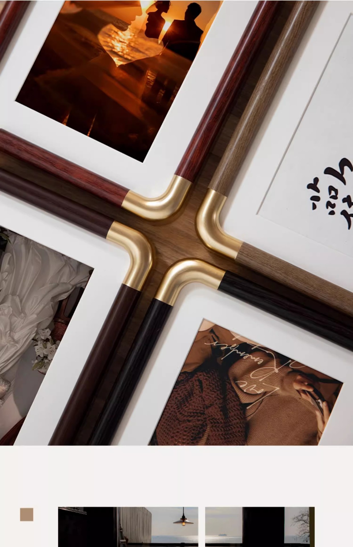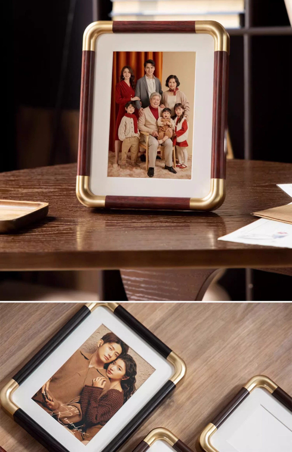 모조 구리 코너 사진 프레임 단단한 나무 질감 사진 프레임 테이블 도매 하이 엔드 데스크탑 장식 부티크 사진 프레임 공장 직접 판매스토어 가기