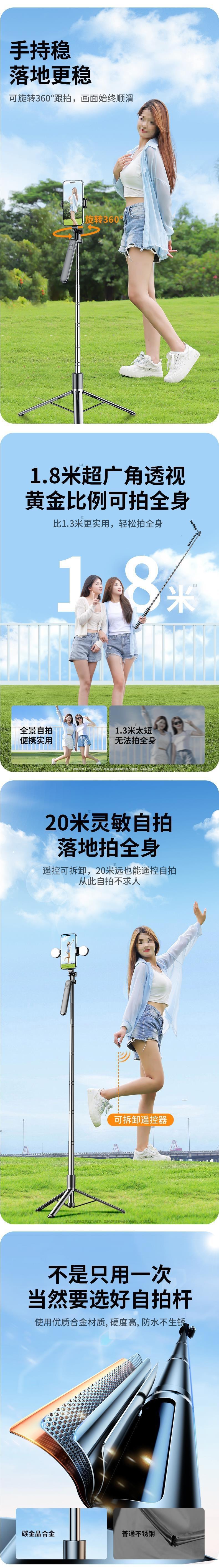 • 1.8 블랙 [상위 모델] 항공 알루미늄 합금 샤프트 + 안정적인 삼각대 + 무료 20 블루투스 리모콘