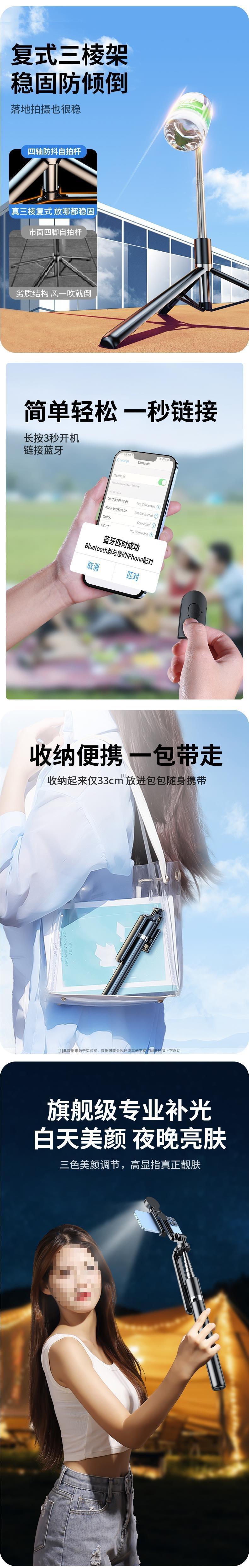 • 1.8 블랙 [상위 모델] 항공 알루미늄 합금 샤프트 + 안정적인 삼각대 + 라이브 뷰티 램프 + 무료 20 블루투스 리모콘