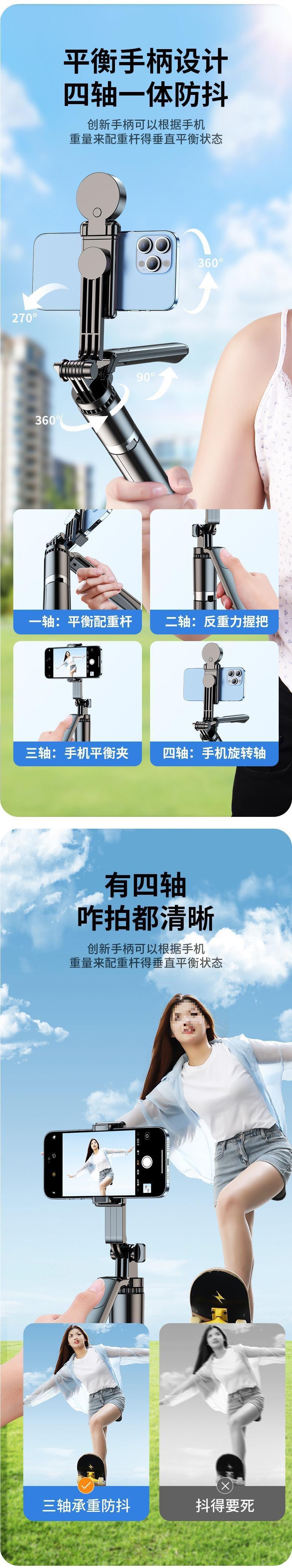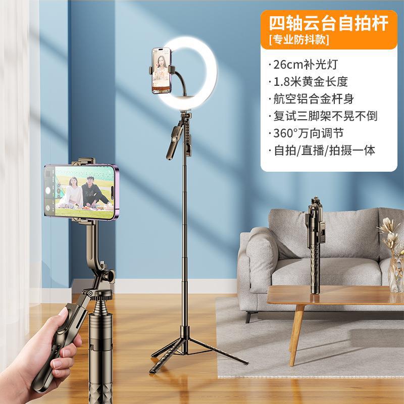 휴대 전화 유니버설 2024 새로운 셀카 스틱 바닥 삼각대 흔들림 방지 360 도 회전 핸드 헬드 팬 틸트 직선