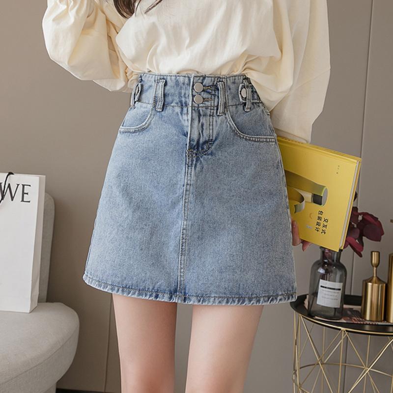 데님 치마 여자 2025 새로운 봄과 여름 패션 슬리밍 높은 허리 느슨한 허리 엉덩이 A 라인 스커트