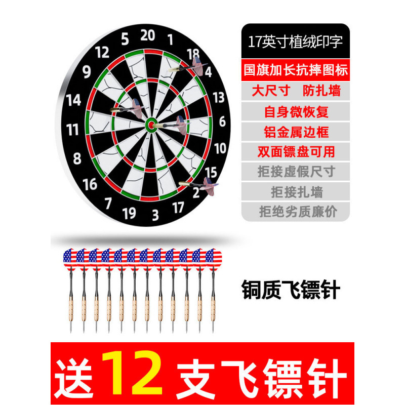 • 17inch 플로킹 다트 보드(두꺼운 스탠드 + 25g 대회 다트 3개 + 구리 다트 바늘 24개 포함)