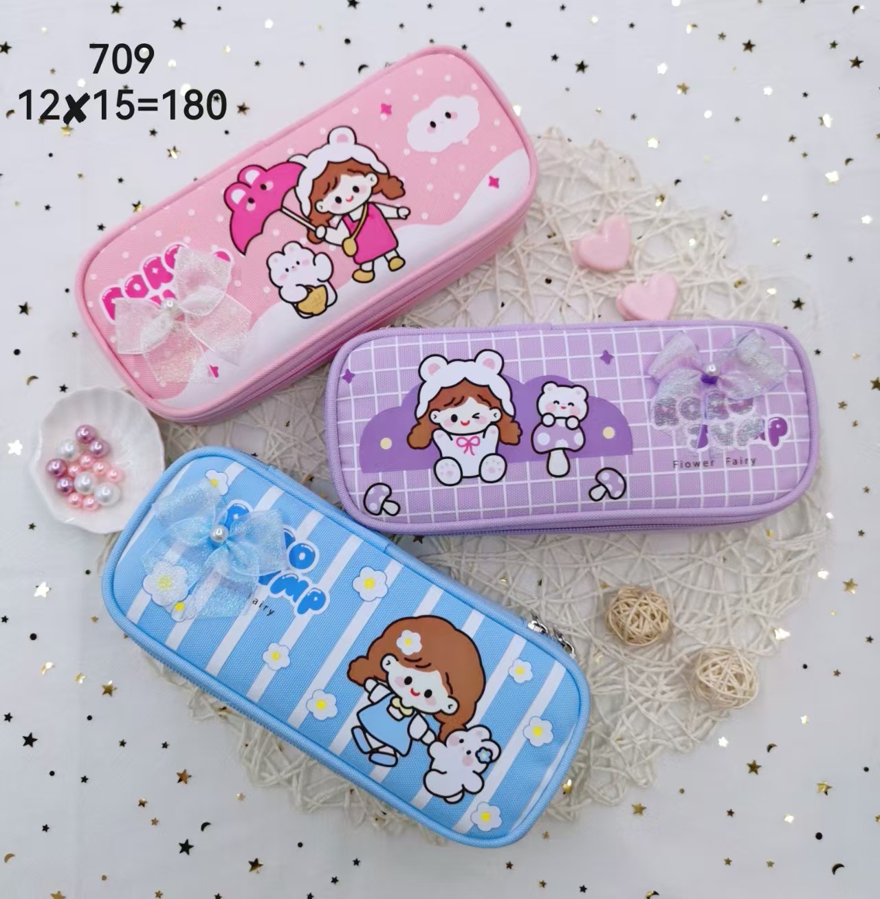 초중등 학교 학생을위한 문구류 상자 만화 귀여운 연필 상자 다기능 귀여운 연필 가방 중학교 여자 대용량 연필 상자