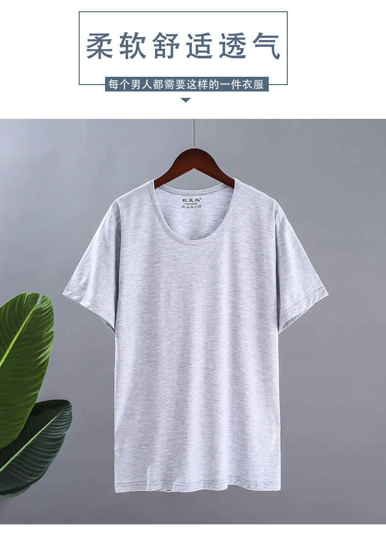 중년 및 노인 남성 순면 조끼 티셔츠 둥근 목 티셔츠 여름 구식 통기성 땀 흡수성 순수한 흰색 빗질 면화